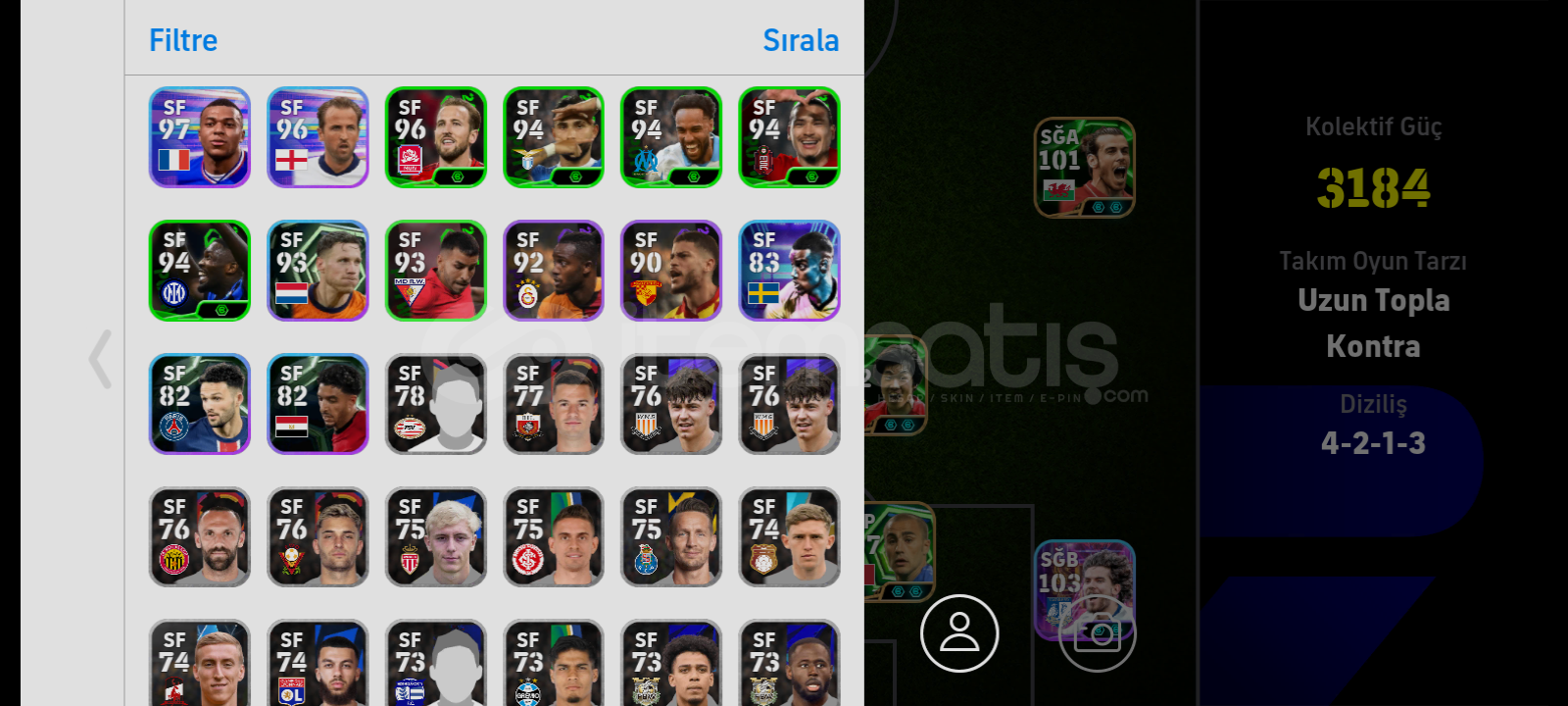 Doğru güçlendiriciler ile 3190 geçebilirİki adet bombacı varSüperlig kadrosu varTek bağ eksi mc yokSorunuz varsa yazabilirsinizAldığınız an aktif olurum