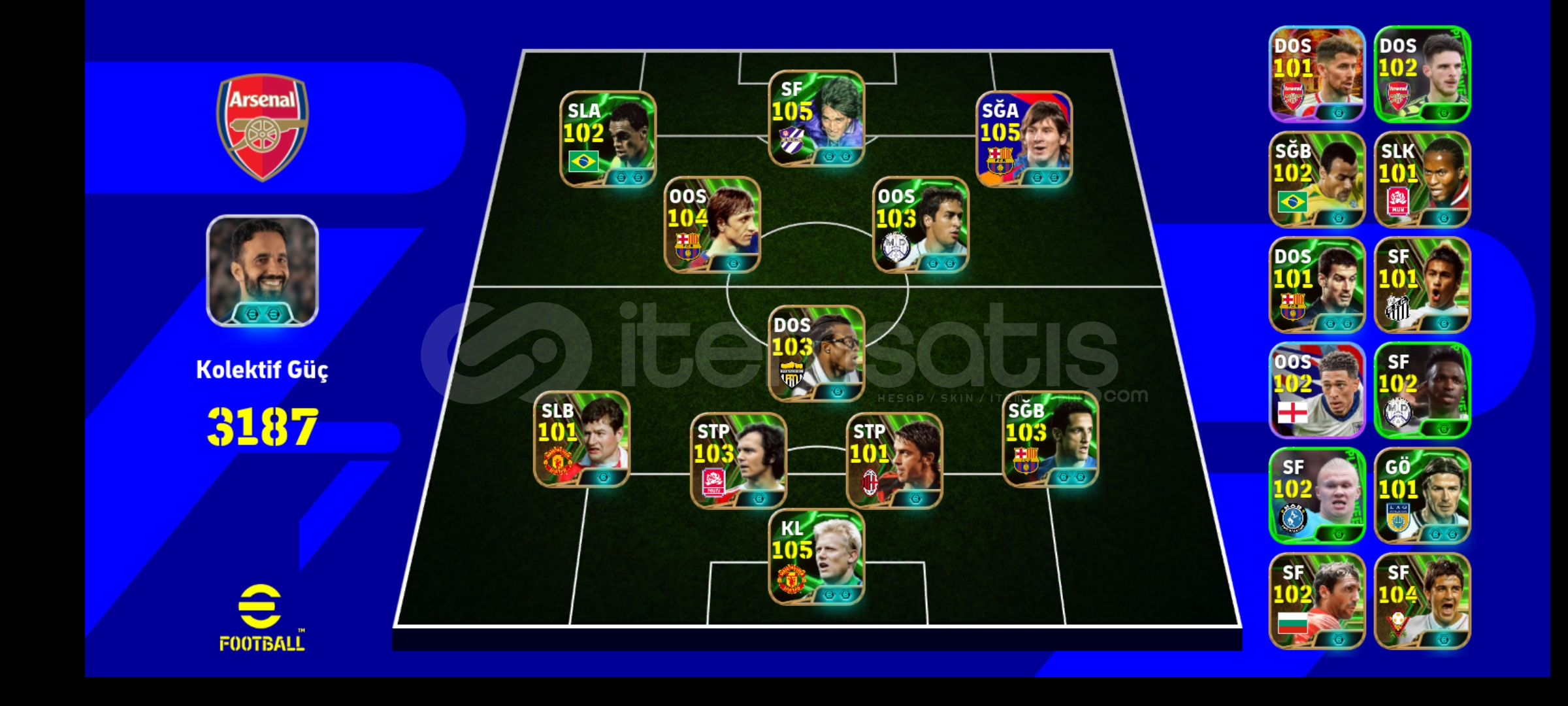 Hesabın hiç bir sıkıntısı yok iOS/Android tek bağ ama hesabın hakkı yok 0 hesabı almak isteyene ayıra bilirim.105 Batistuta103 Raul105 Schmeichel104 Cruffy105 Messi103 Belleti103 Denilson103 Edgar Davids104 David Villa