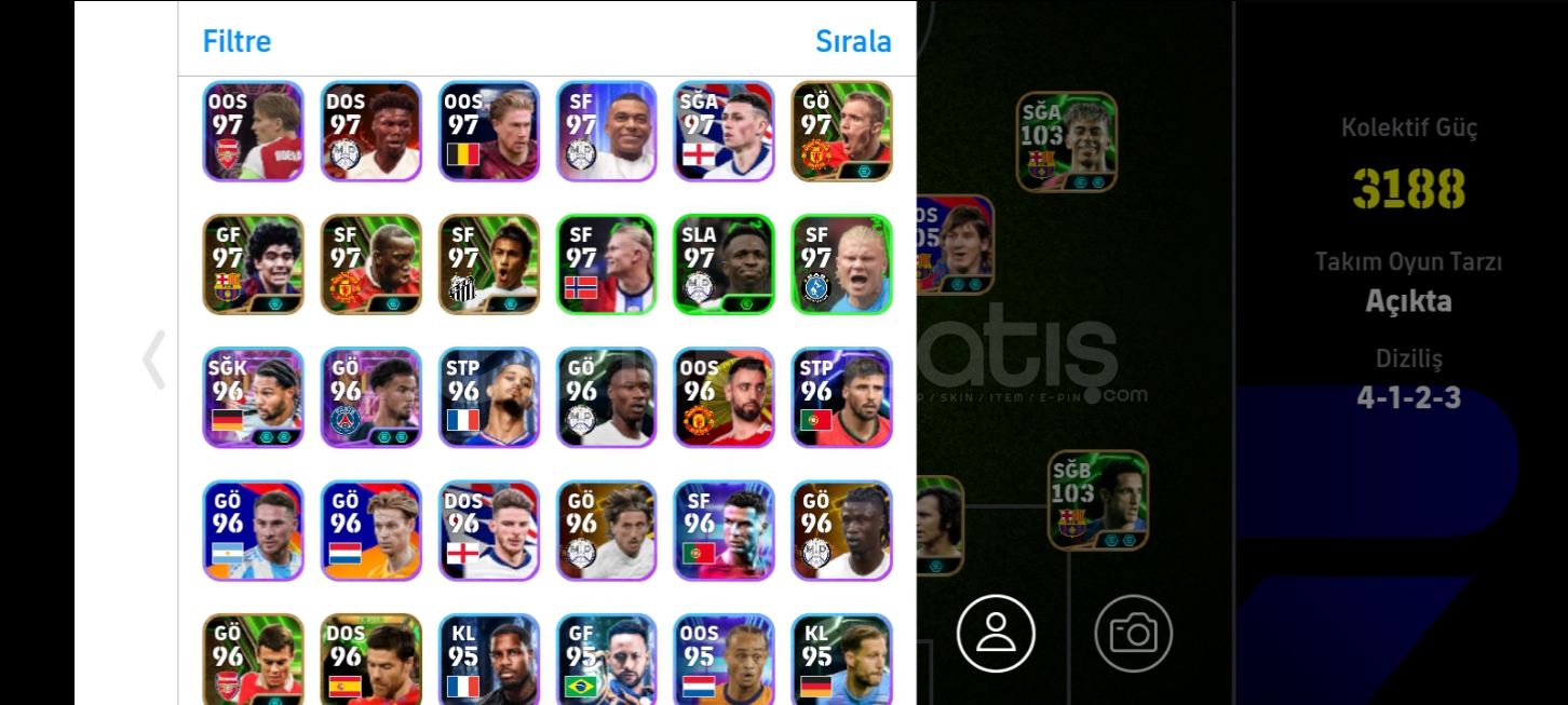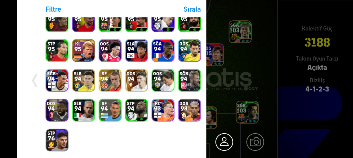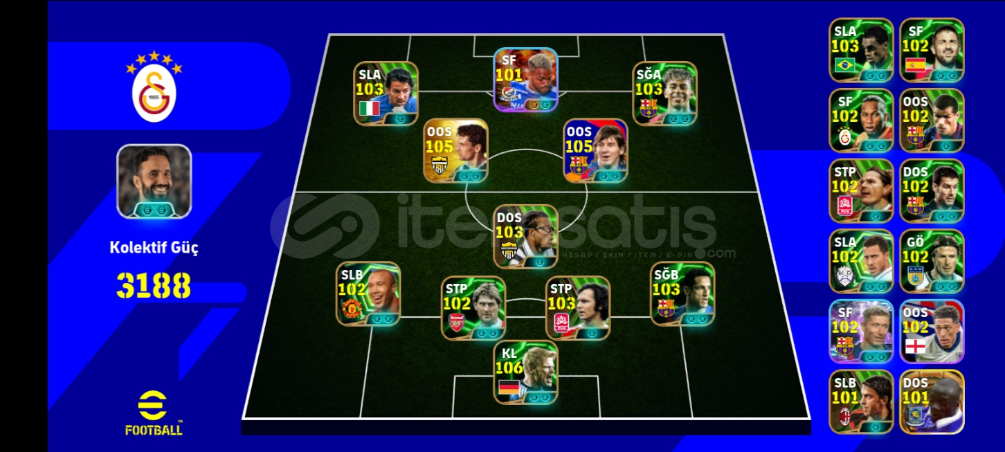 🎉 İlanımı gören herkese merhabalar dilerim 🎉💪 3190 Kolektif Güç📱 Hesap Google Play hesabı silinmiştir✅ Eksi MC yoktur🔥 1 Bombacı vardır:💣 103 Del Piero⚡ Hızlı Kanat:🌀 104 Yamal👑 Orta sahanın kralı:⚽ Baggio🚀 Ve dahası... 🚀