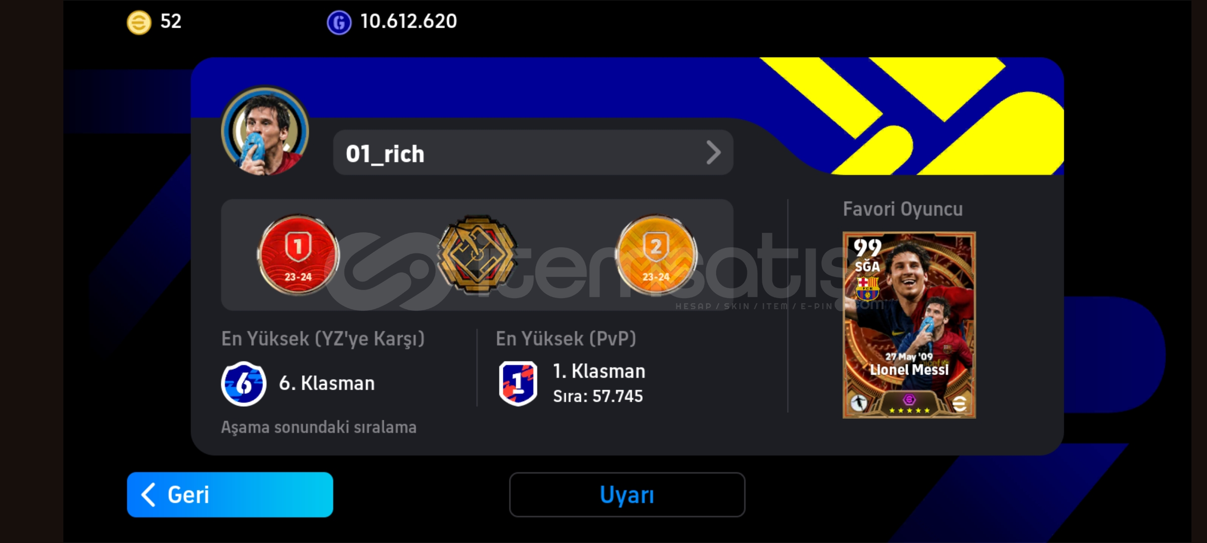 Hesap tek bağ konamidir. -Mc yoktur. Hesap çok doludur, klasman 1 olmuş hesaptır. Cüzi miktarda pazarlık olur.