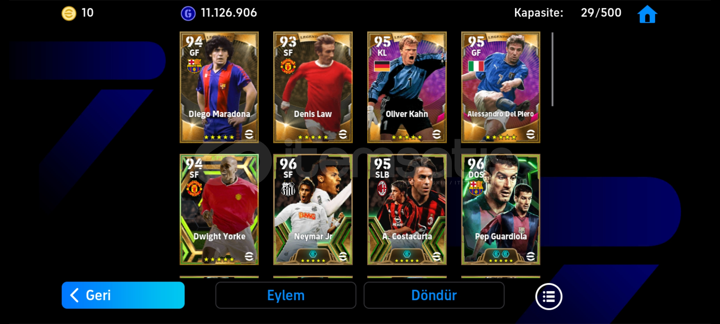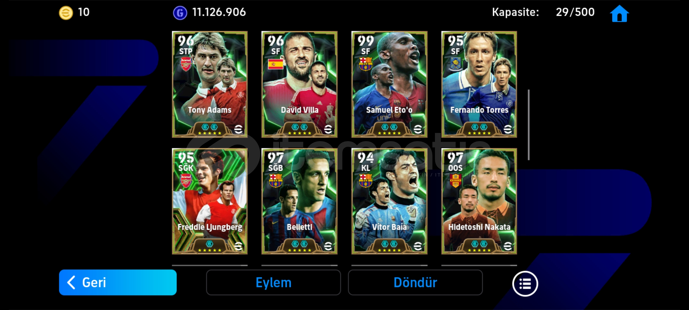 3190KG OYUNUN EN İYİ BOMBACISI VE FORVETİ105ETO 105DEL PİERO 106YAYA TOURE 105KAHN 104REUS 103İSAK 103BELLETTİÇİFT GÜÇLENDİRİCİ AMORİM+ MOURİNHOİNANILMAZ ESKİ NOSTALJİK KARTLARÇİFT BAĞDIR EPOSTANIZA DEVREDİLİRALICISINA HAYIRLI OLSUNPAZARLİK OLUR PAZARLİK SÜNNETTİR