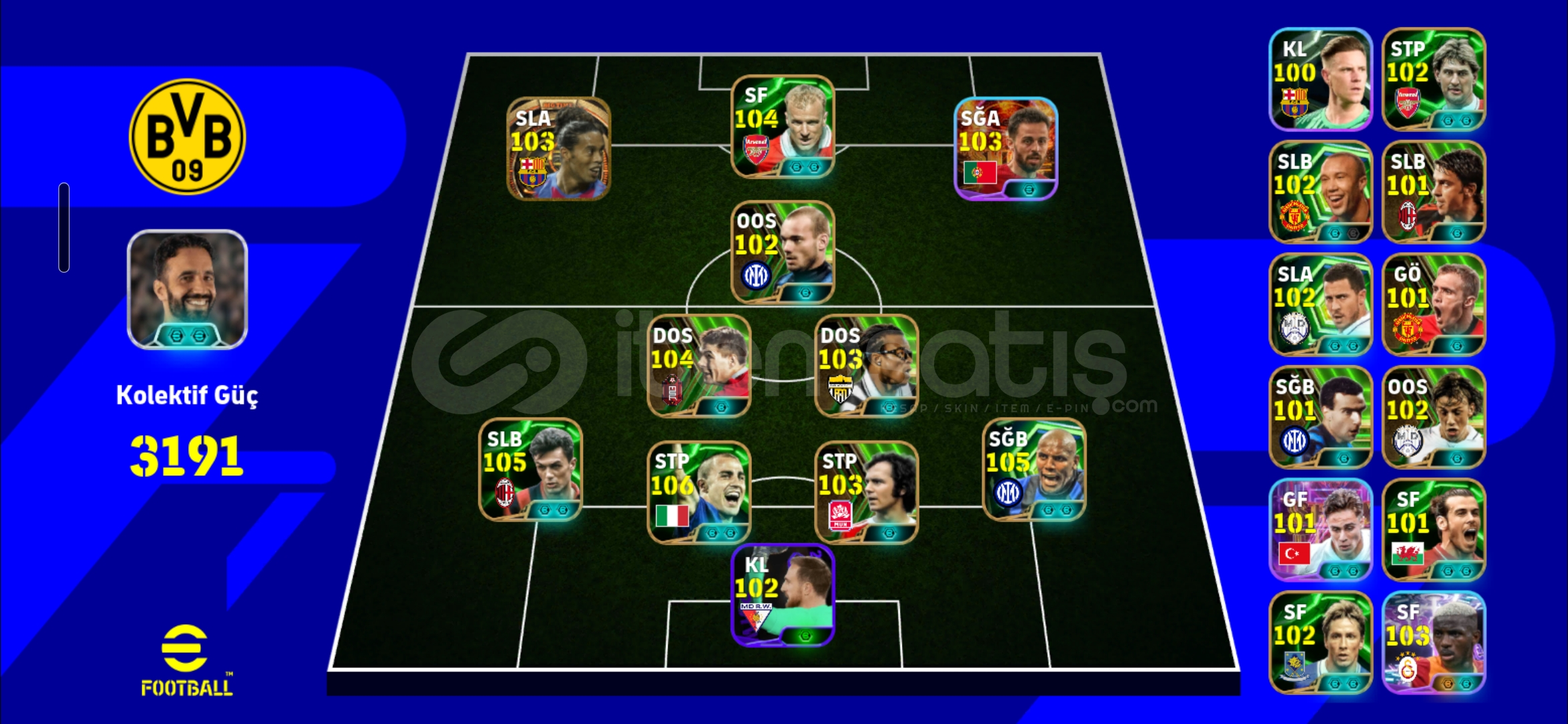 Tek Bağ105 Pike Yapan Orta Maicon105 Savunmacı Sol Bek Maldini104 DOS Gerrard104 Bombacı Bergkamp103 Öngörülü Pas Bernardo101 Savunmacı Sağ Bek Bergomi+Dolu Rezerv Oyuncular-Cüzi Miktarda İndirim Yapılabilir-