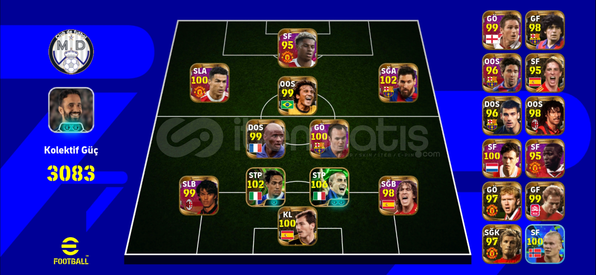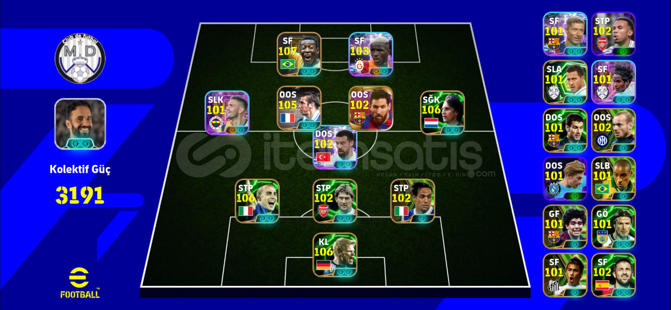 108 Pele 103 osimhen 106 cruyff 105 cantona 102 messi 100 ronaldo maradona gullit zico puyol rashford casillas beckham rummenige 106 oliver kahn gibi kartlar vardir fotografta daha detayli 3191 kg ve icon takim