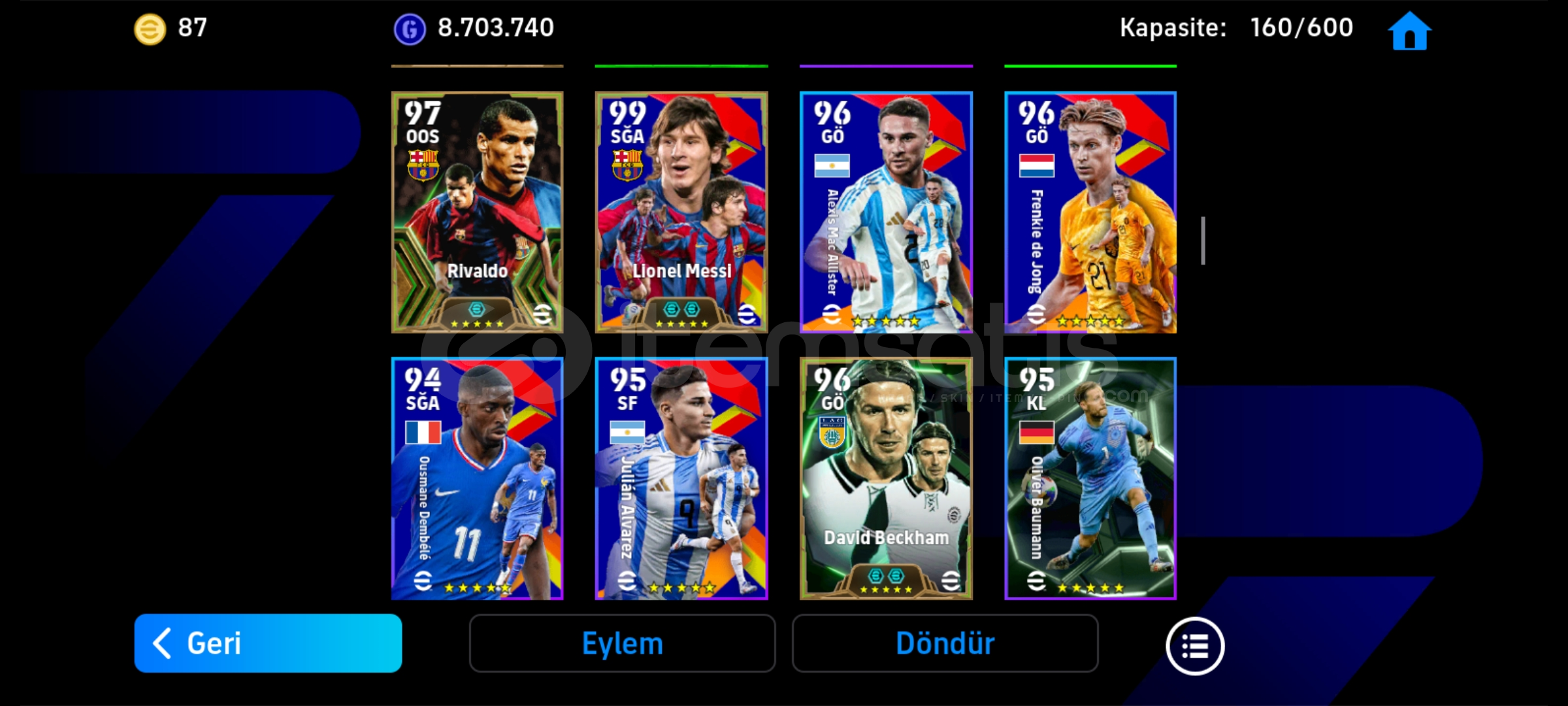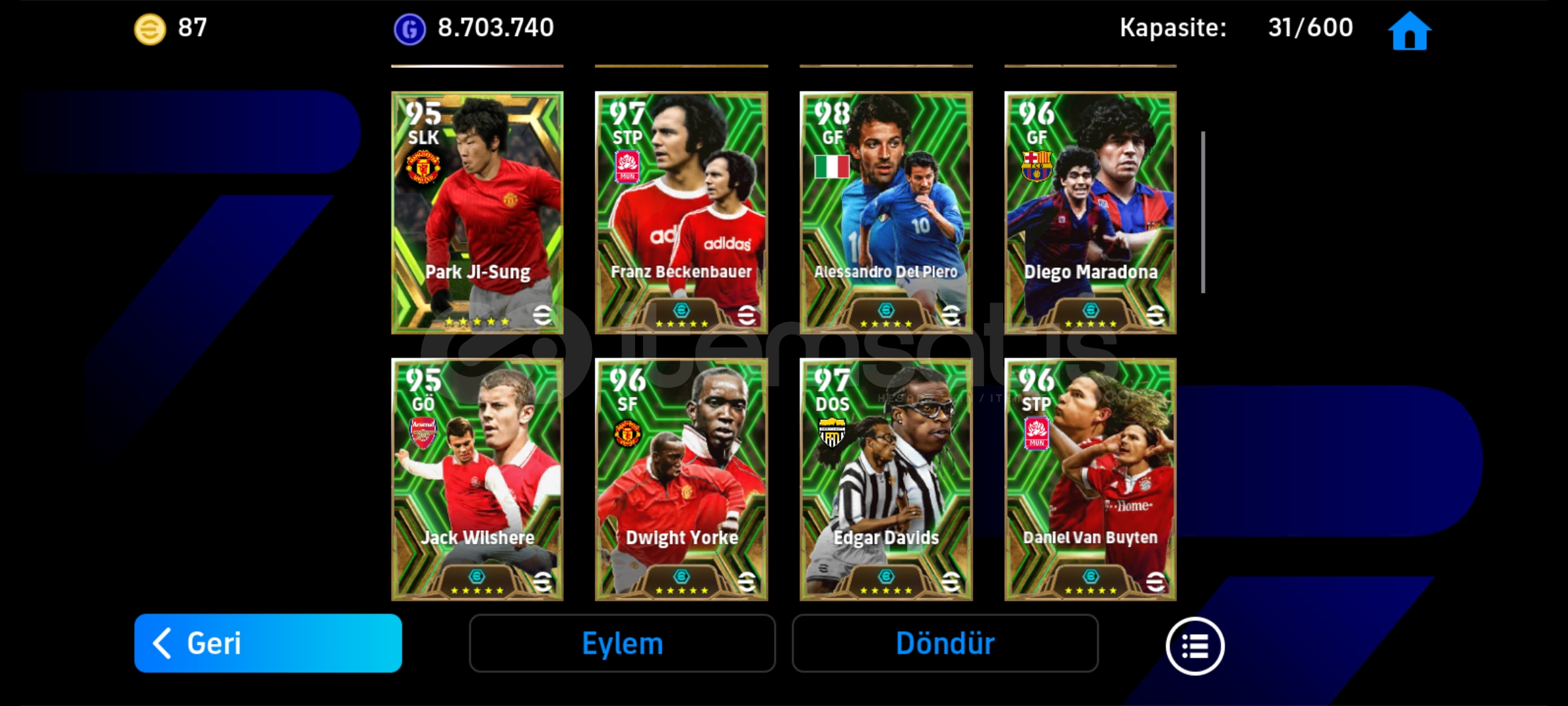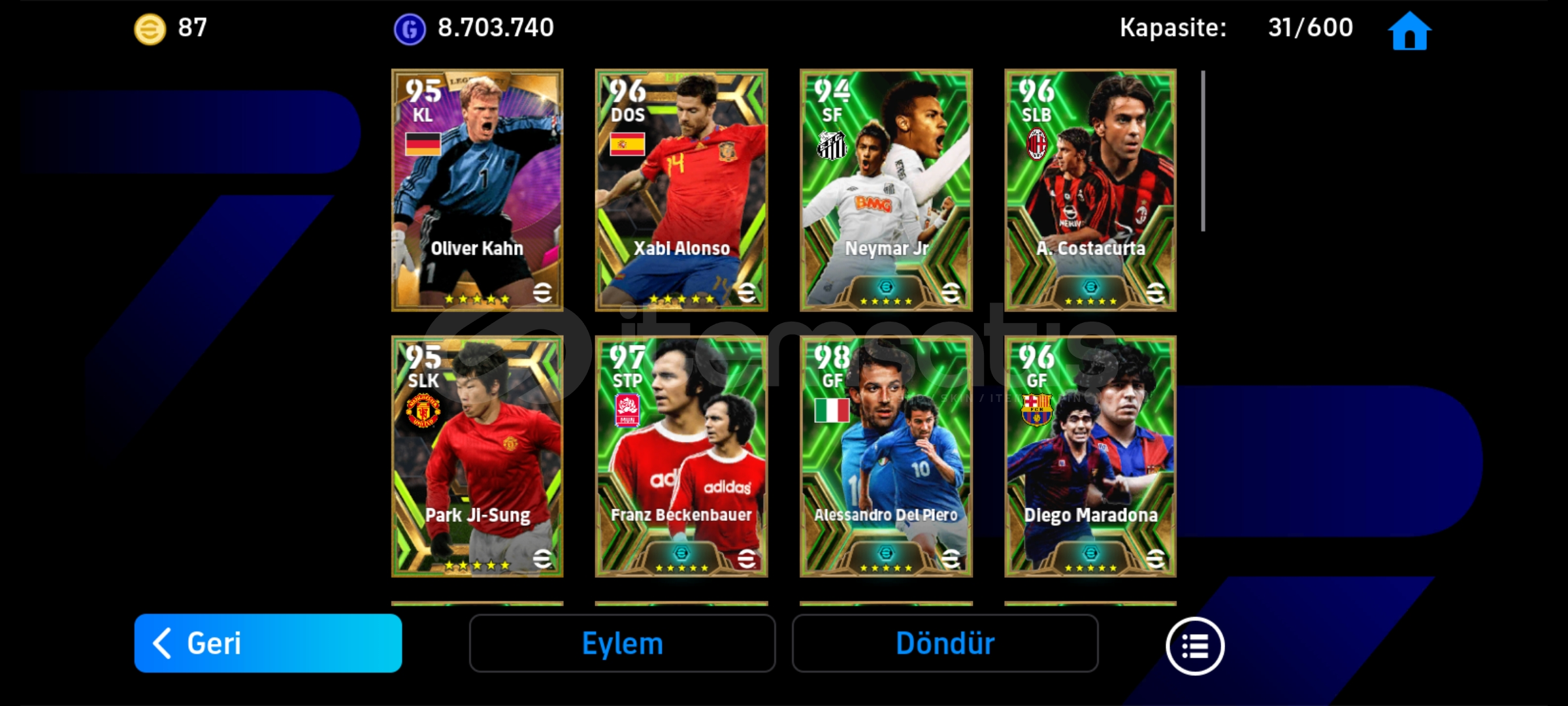 3191KG BOMBACI DEL PİEROLU İNANİLMAZ HESAP105BAGGİO 105KAHN 105MESSİ 104DEL PİERO103DAVİDS 103BECKENBAUER 103BELLETTİ İNGİLTERE VE MESSİ PAKETLİ İKONİK OYUNCULARÇİFT GÜÇLENDİRİCİ PARALI CAPELLO +5 TEKNİK DÇİFT BAĞDIR EPOSTANIZA DEVREDİLİRALICISINA HAYIRLI OLSUNPAZARLİK OLUR PAZARLIK SÜNNETTİR