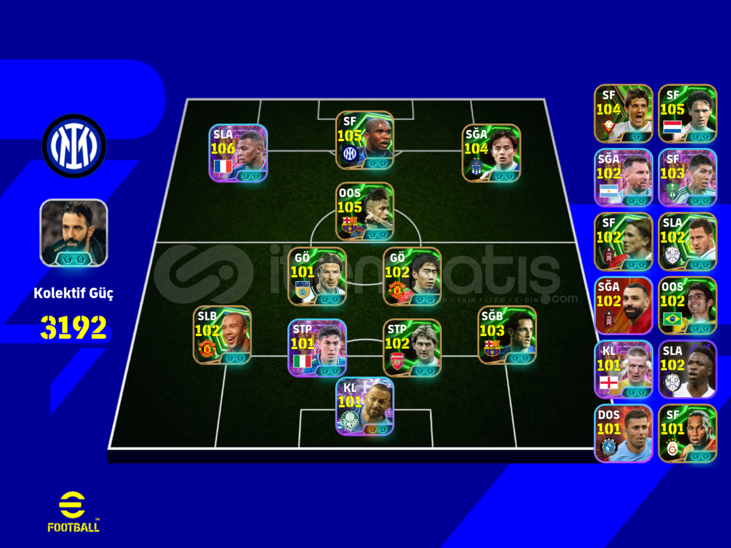 3192 KG TEK BAG PES HESABI 5+ÖZEL OYUNCU 106 BOMBACI MBAPPE - 105 ETO - 105 NEYMAR - 104 KUBO