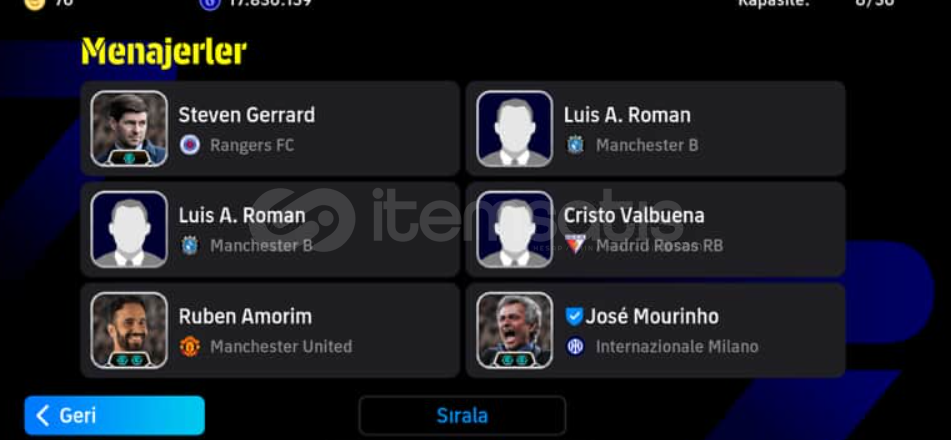 Hesabın 2 teknik direktörü vardır(89 oynatan) hızlı kontratak ve açıkta şeklinde oynatılabilir.