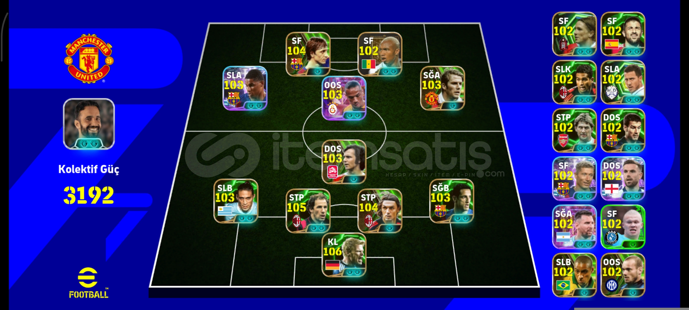 3192KG HESABİMİZ 2BOMBACILI ESKİ KARTLAR DOLU REZERV HARİKADIR. 106KAHN 105BARESİ 104MALDİNİ 103SANE 103CACERES 103RASHFORD 103BELLETTİÇİFT GÜÇLENDİRİCİ AMORİM GATTUSOTEK BAĞDIR EPOSTANIZA DEVREDİLİRALICISINA HAYIRLI OLSUNPAZARLİK OLUR PAZARLİK SÜNNETTİR