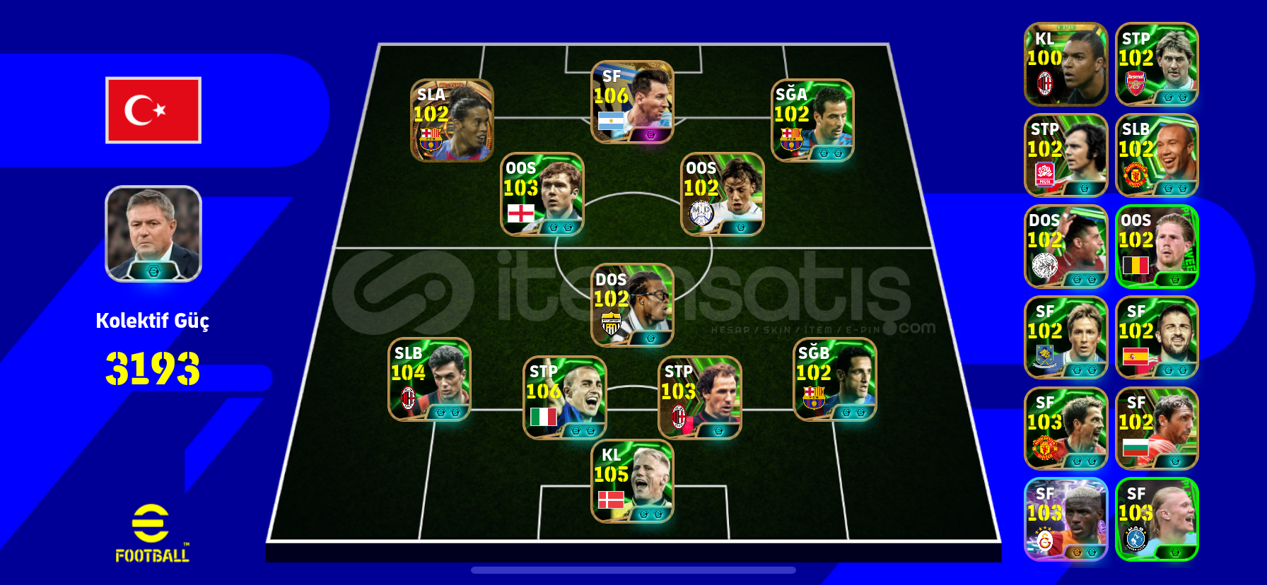106 MESSİ 102 Ronaldinyo 103 Osimen 104 Maldini 106 Cannavaro