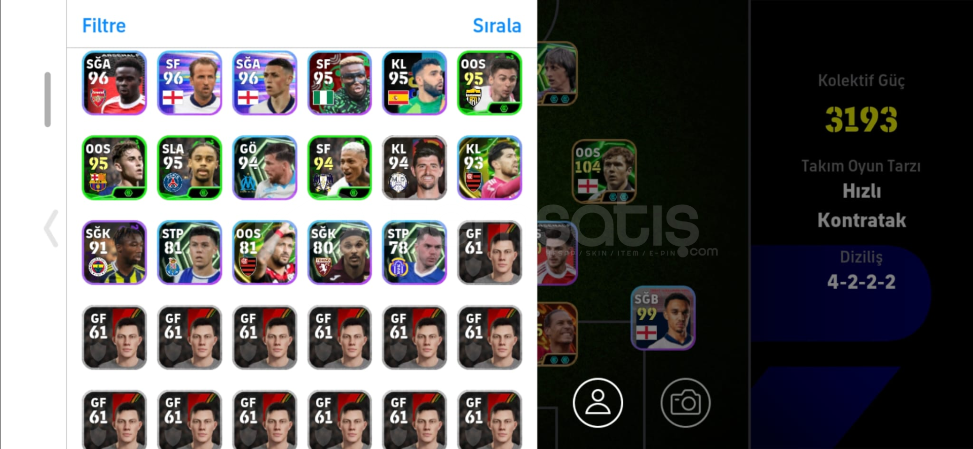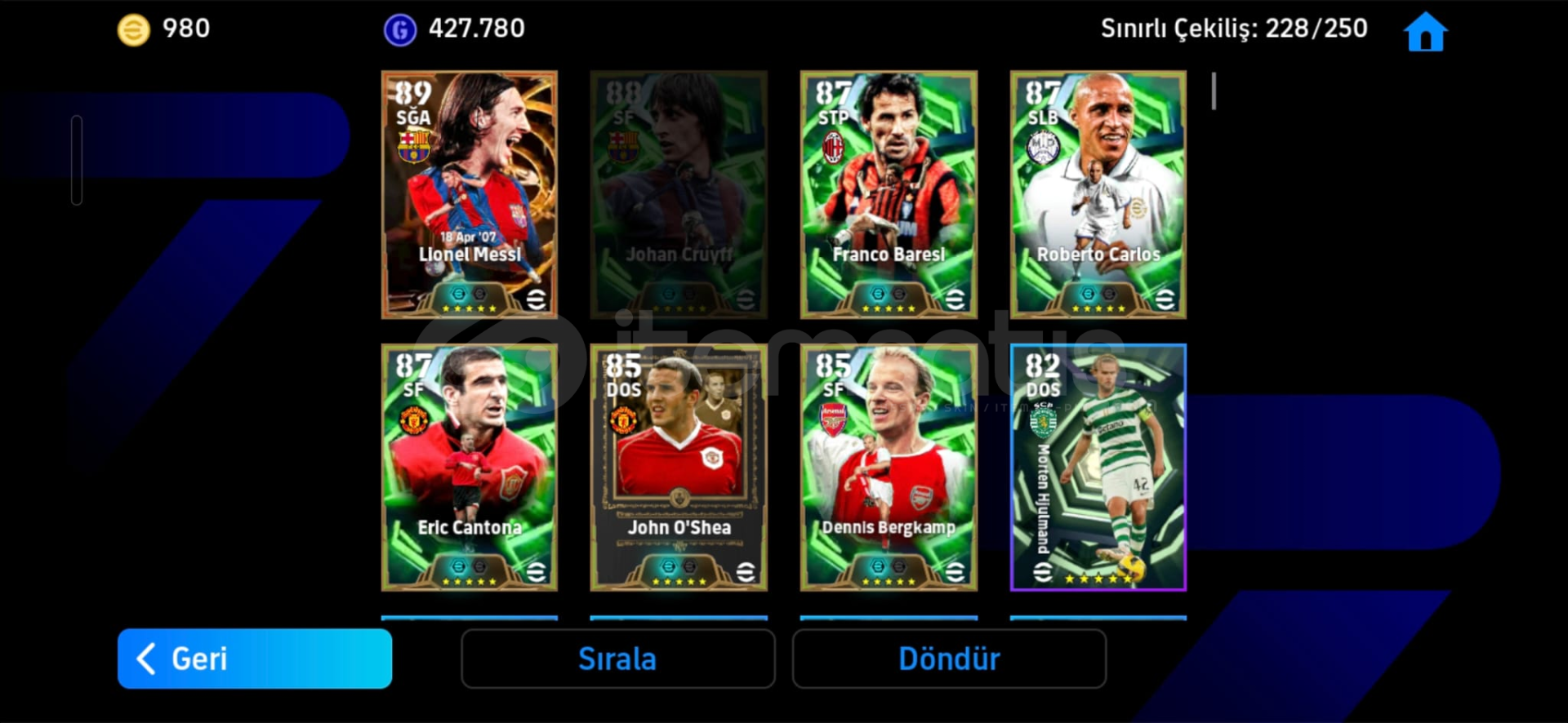 Hesap tek bağdırMessi paketinden 22 tane açılmıştırHesapta 980 Mc vardırHesabın rezervindeki 61 lik oyuncularda beceri basılıdır105 Van Dijk107 Gullit109 Cruyff103 Ömer MarmuşAlana şimdiden hayırlı olsun