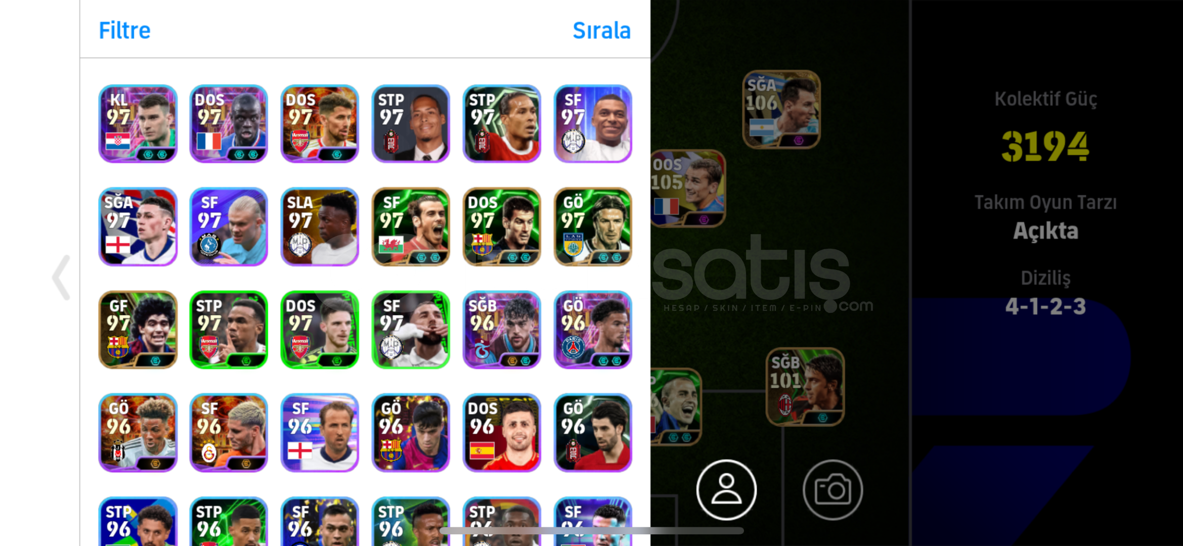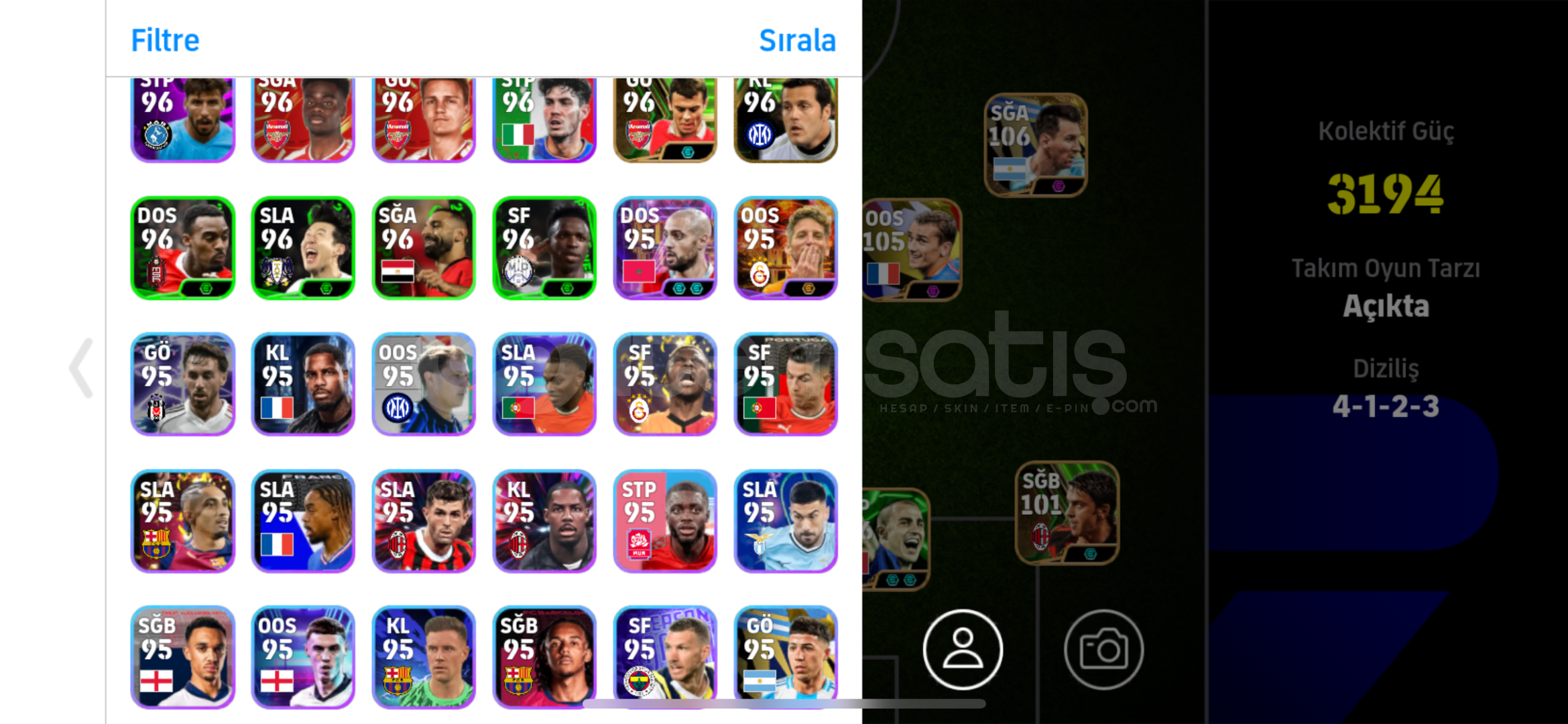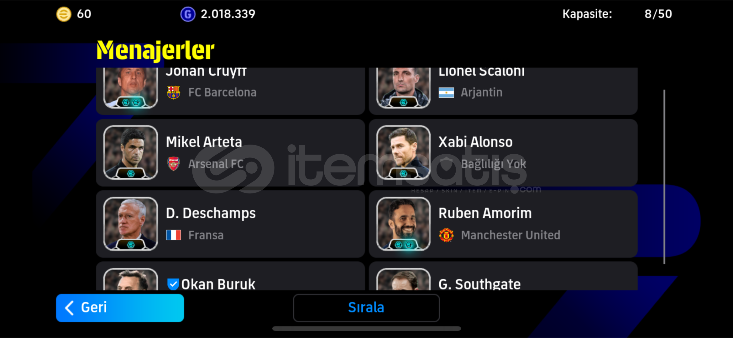 106 messi 105 griezman 105 cantona ve bazı özel kartlar 8 teknik direktör lig etkinlikleri veya sıralamaya rahatça oynanabilir pazarlık yapılabilir