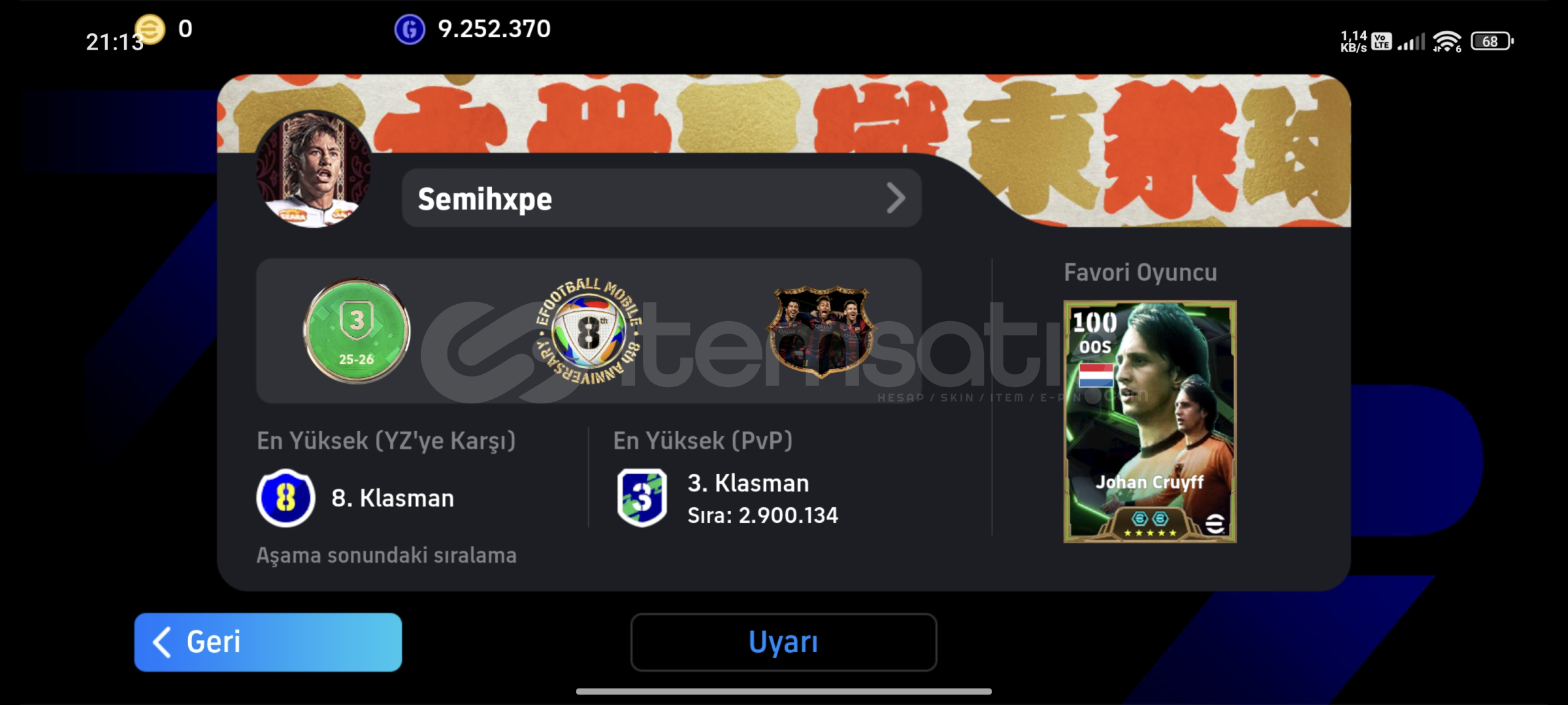 106 Johan Cruyff bombacı Leroy Sane106 Ferdinand tek bağ harika hesap Fiyat konusunda anlaşma yapılır