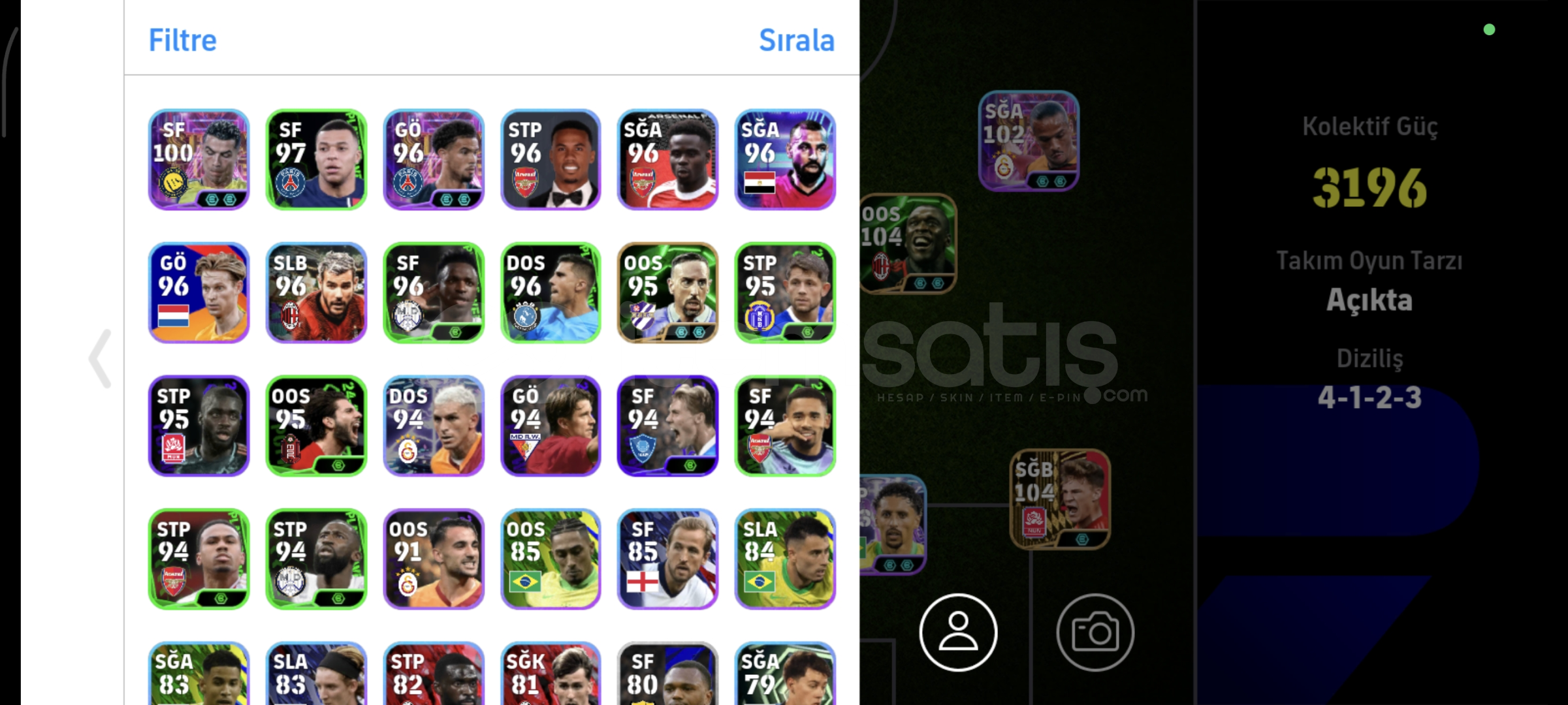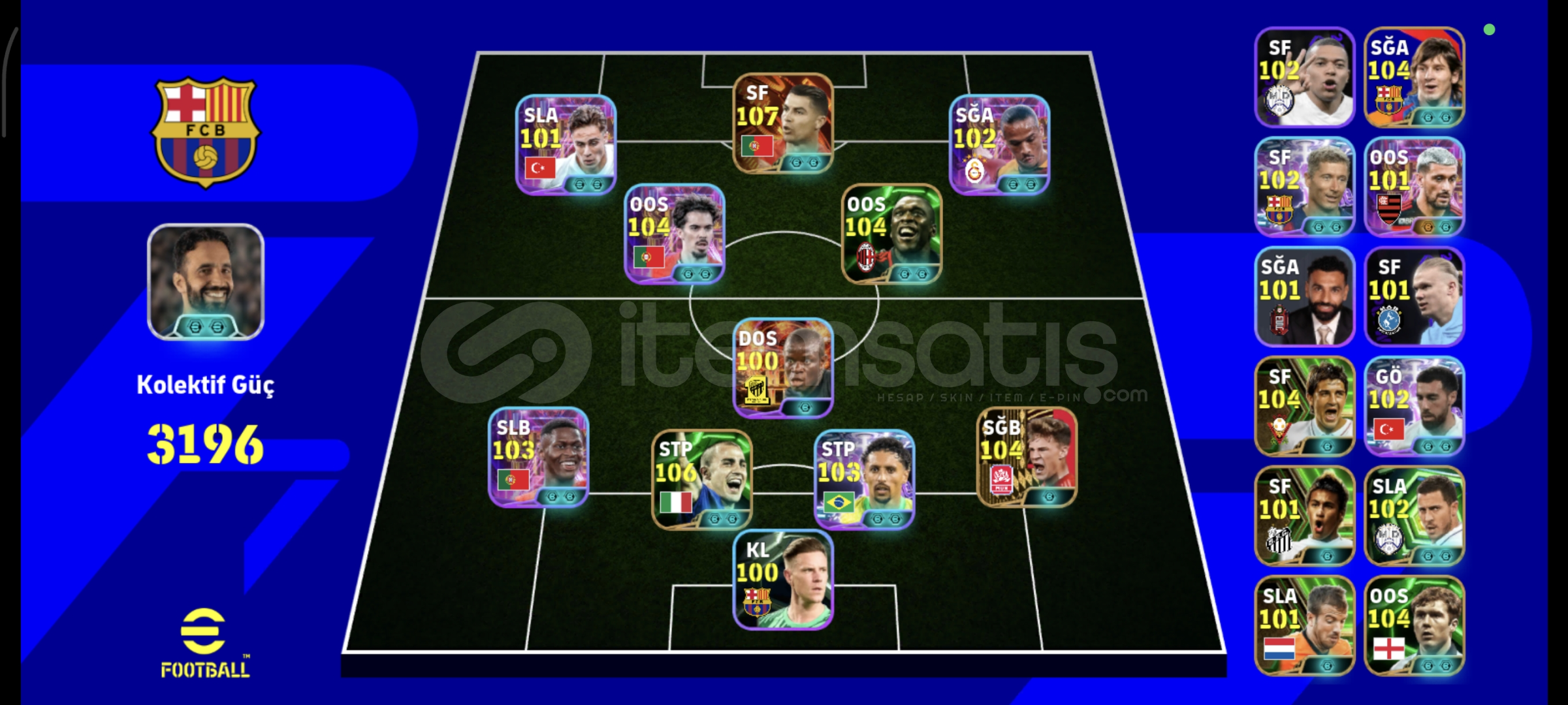 Mükemmel kadroya sahip 107 Ronaldo 102 Bombacı Sane ve dahasına sahip tek bağ hesap hızlı ve güvenilir anında teslim İNDİRİM OLUR