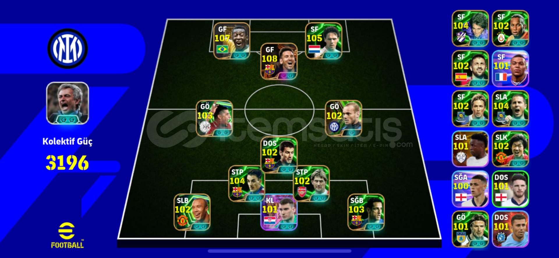 OYUNCULAR108 Bombacı Messi107 Pele105 Marco Van Basten104 Prime Eden Hazard104 Albert Ferrer104 Gabriel Batistuta103 BelettiVE DAHA FAZLASI (fotoğrafta bütün oyuncular mevcuttur) TEKNİK DİREKTÖRLER JOSE MOURİNHORUBEN AMORİN FRANK LAMPARD