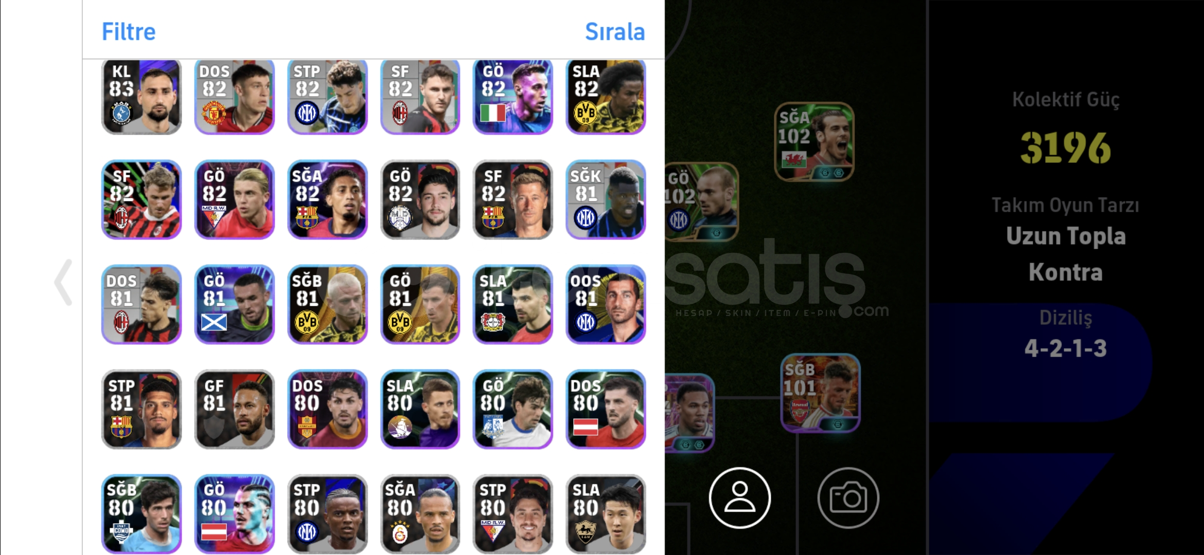 3196 KG, 3 BOMBACILI, BOL REZERVLİ✅️106 Bombacı Mbappe104 bombacı Del Pierro102 Bombacı Gareth Bale105 Xavi105 Baresi104 Pique104 Magalhaes104 Jordi Alba Çift güçlebdirici Capellove daha bir çok efsane nadir kartlar , dopdolu rezerv, oyunun en iyi 5 bombacısından ikisi(mbappe, del pierro), IOS / ANDROID TEK BAĞ, -mc falan yok alanı üzmez✅️ efsane hesap..küçük çaplı pazarl...