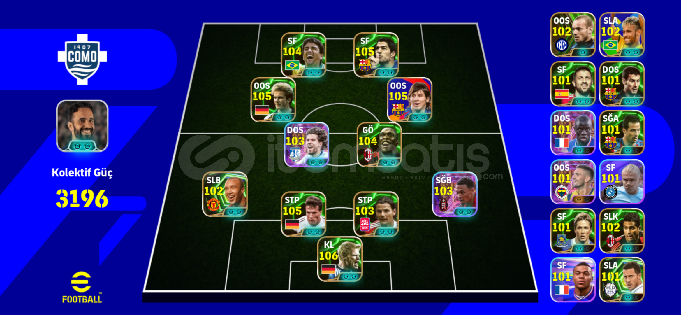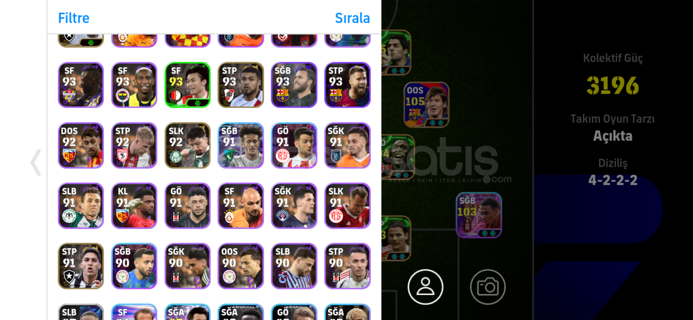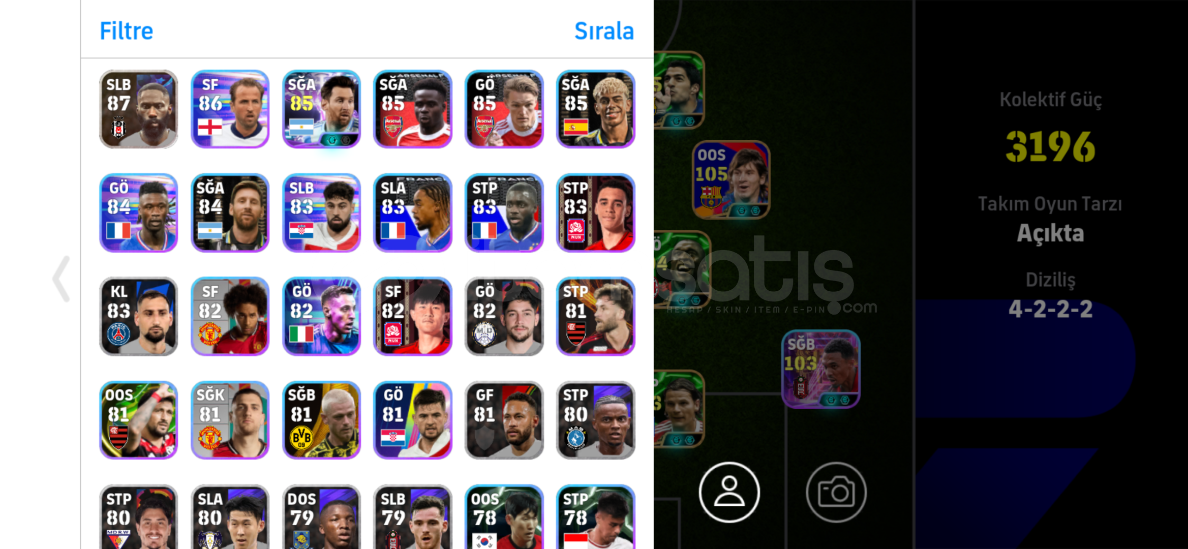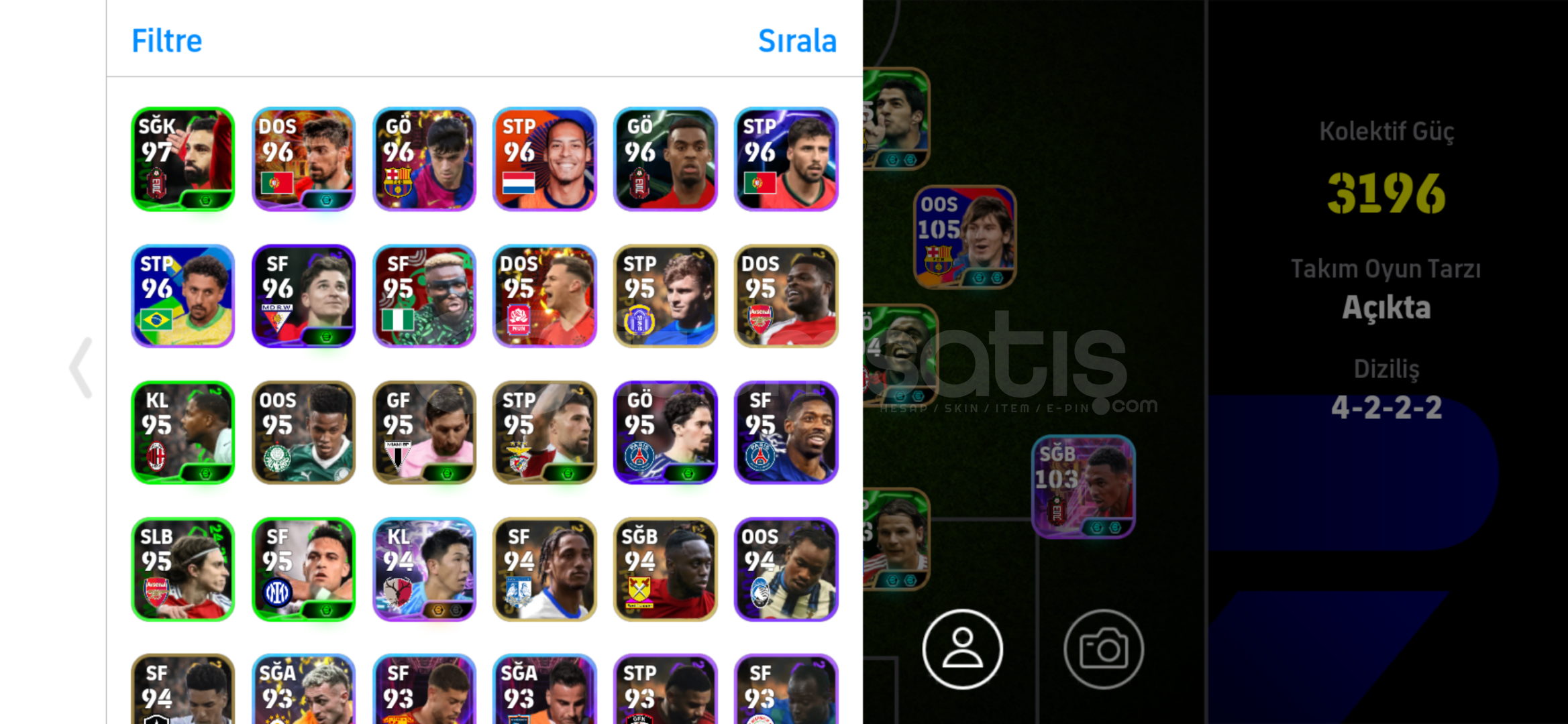 3196 kolektif güçlü 182 oyunculu 9,7m gp’li hesap