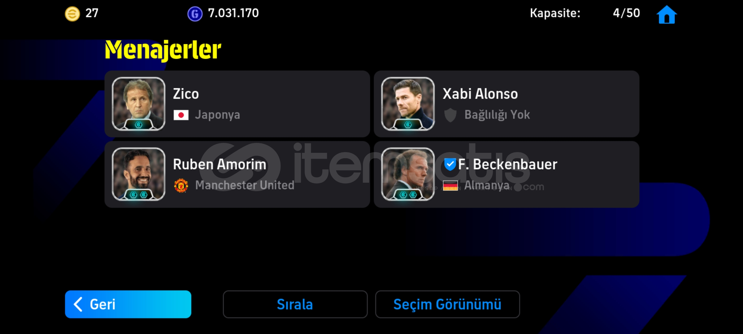 Güçlendirici Menejer; F.Beckenbauer, Ruben Amorim, Xabi Alonso, Zico.