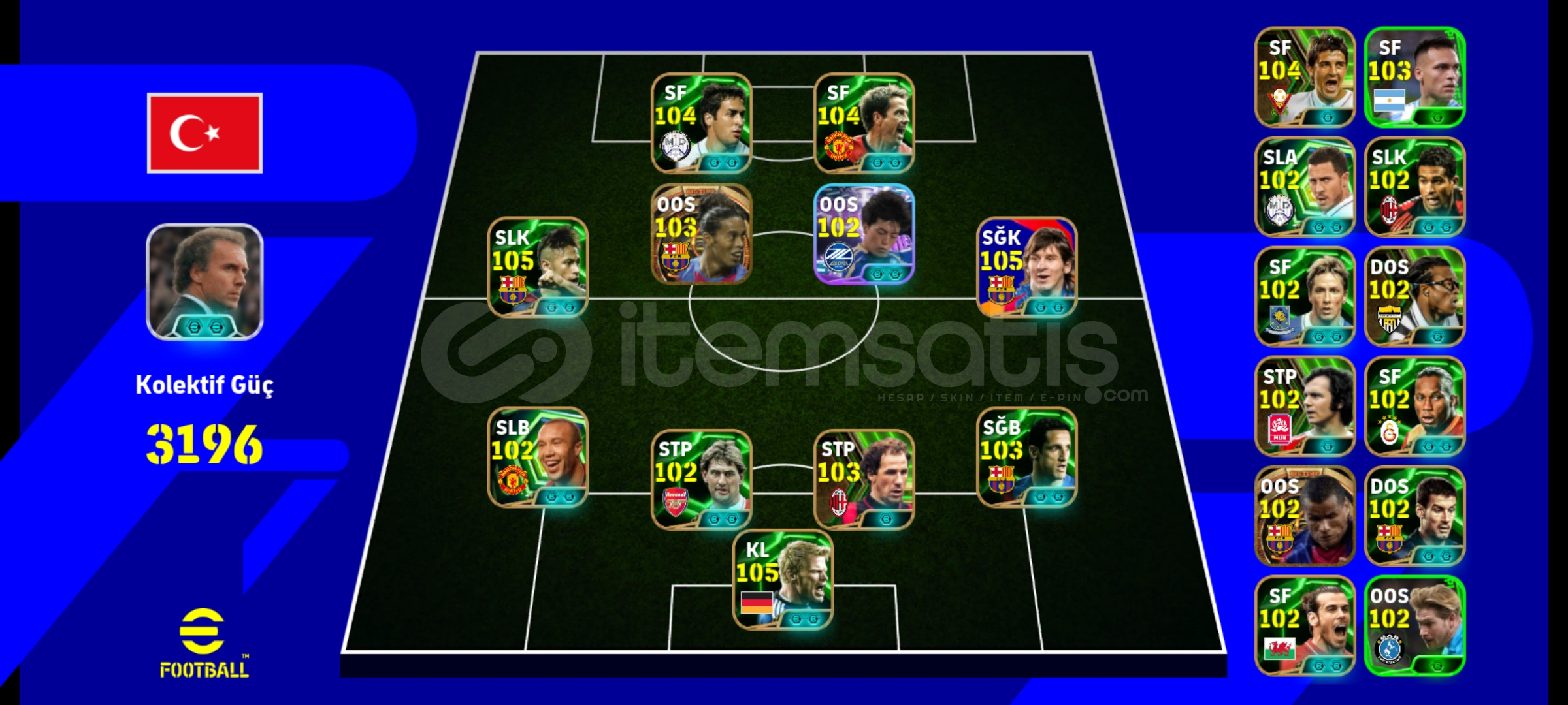 3196 Kolektif Güç,Tek Bağ Konami ID,Güçlendirici Menejer; F.Beckenbauer, Ruben Amorim, Xabi Alonso, Zico.105 Paket Messi, 102 Bombacı Yuki Soma, 105 Epic Neymar,105 O.Khan,104 Raul ve dahası...Bol Bol Antrenör,311 Seçmeli Güçlendirici Puanı 10 Tane Rastgele Güçlendirici ,Tüm Detalar Fotoğraflarda Mevcuttur,Giriş Hakkı 7'dir.