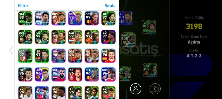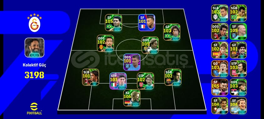 HESAP HAKKINDA:3198Kg! Tek bağ bombacılı efsane hesap! 106 OLİVER KAHN ⭐105 MESSİ WORLDCUP ⭐103 BOMBACI ZİCO 🌟 +3 GÜÇLÜ MENAJER 🌟Bol bol Epic, Showtimes, özel menajarler mevcut !──────────────────────────────────&#...