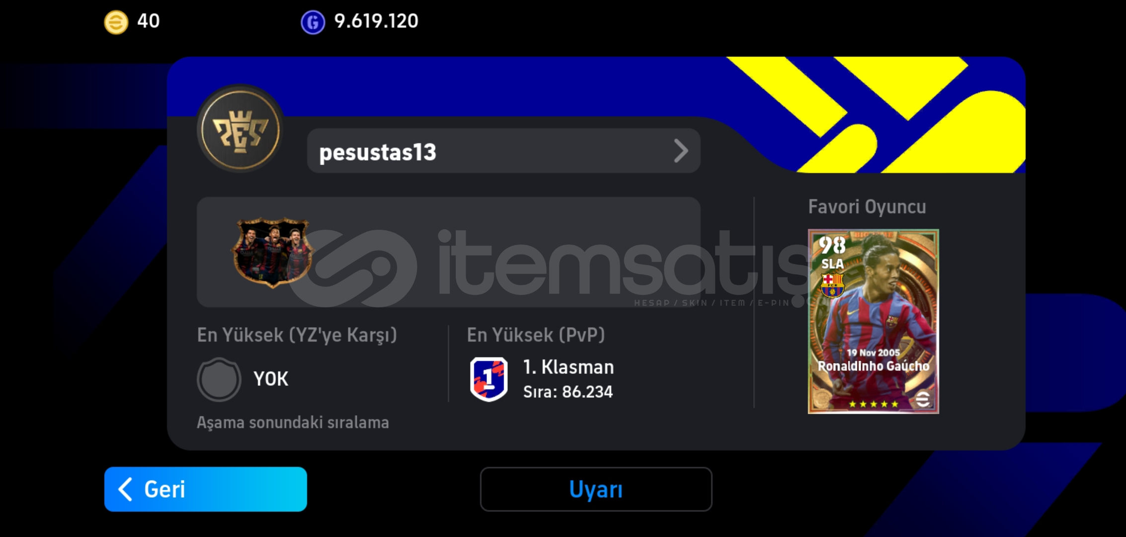 Efsane kadro kaç kere 1. KLASMANA Ulaşmış.Doğru Güçlendiriciler İle 3200 GeçerSayfa Sayfa Rezerve Her Oyun Tarzına Uygun Kartlar Ölü Bağ And EKSİ YOK Bağ Koparılmış Vaziyette Tek Giriş Yöntemi Konami İd ONUDA SİZ ALICILARA TESLİM EDİYORUZ Sadece Ama Sadece Ciddi Alıcılar Yazsin Boş Yapan Rica Ediyorum Gelmesin Kalp Kırarım Ciddi Alıcılar...