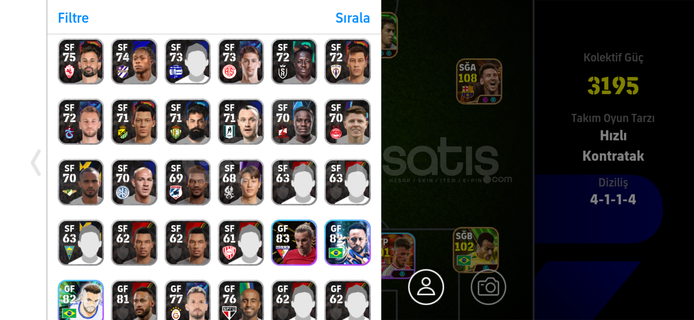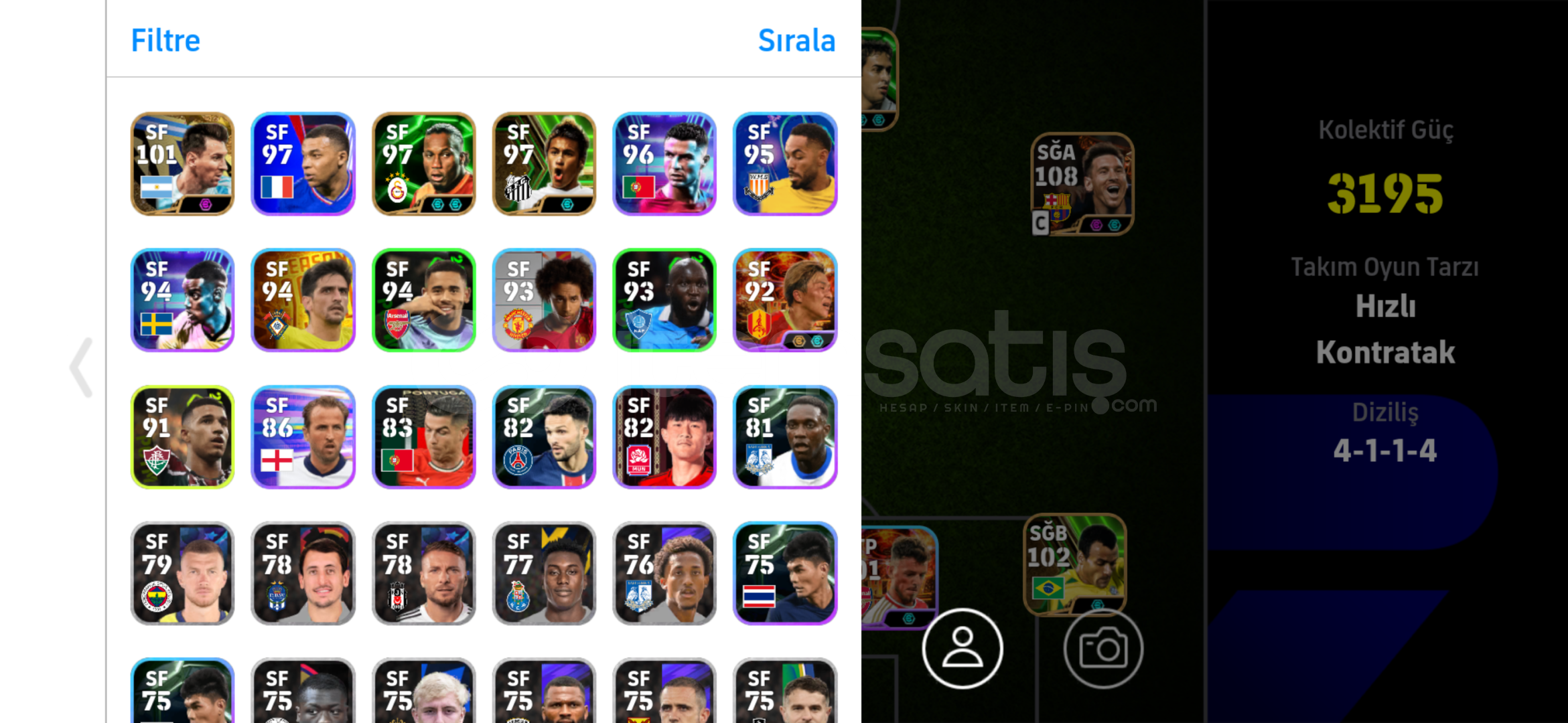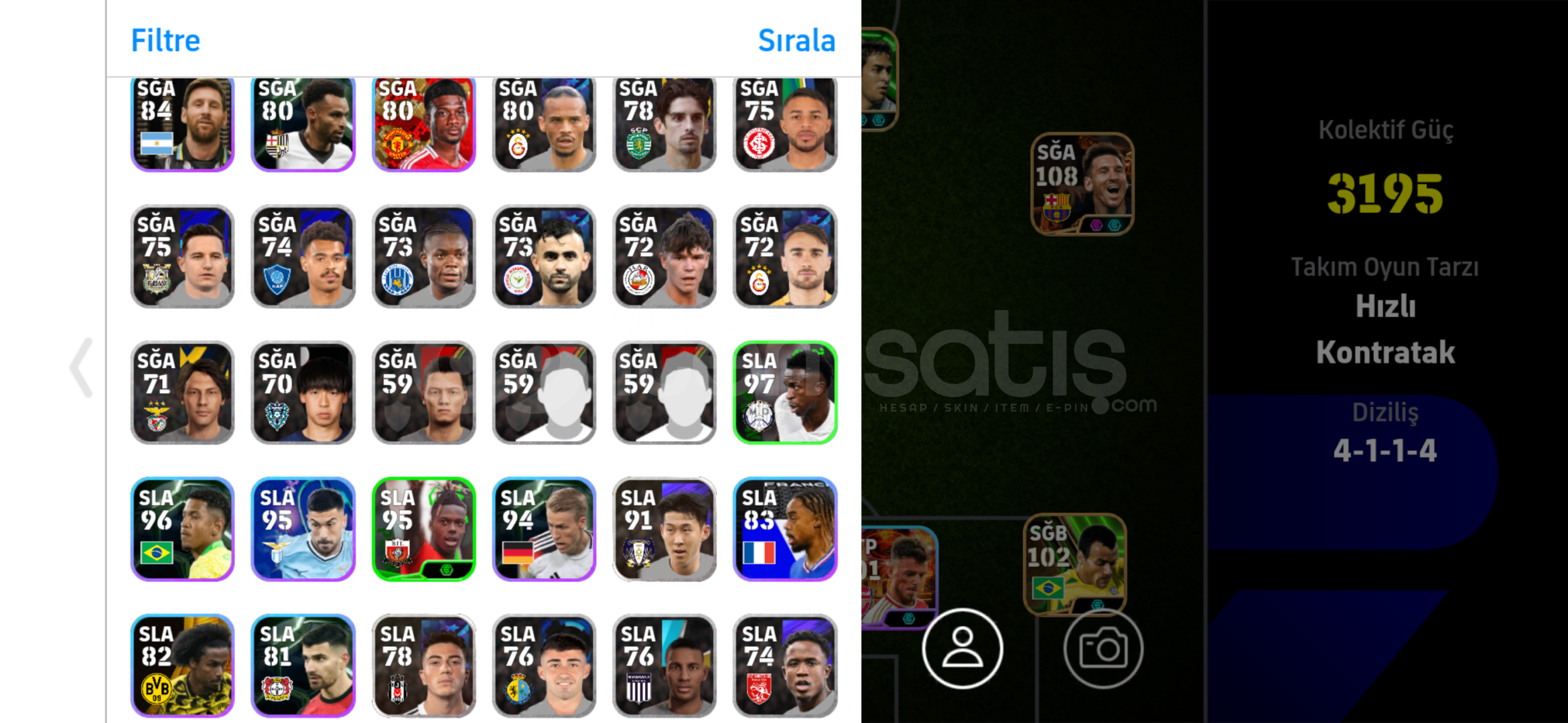 HESAP HAKKINDA: Bombacılı Tek bağ(KONAMI ID) efsane hesap!Güçlendiriciler ayarlandıktan sonra 3200+ kg olur! Bol bol Epic, Showtimes, özel menajarler ve sağlam kartlar mevcut!Güzel fiyata efsane hesap çok durmaz kaçırma!108 BOMBACI MESSİ VARDIR VE YEDEKLERDE 106 MESSİ VARDIR235 Tane 10.000 DP vardır202 Tane 4.000 DP vardır151 Tane 1.000 DP vardır