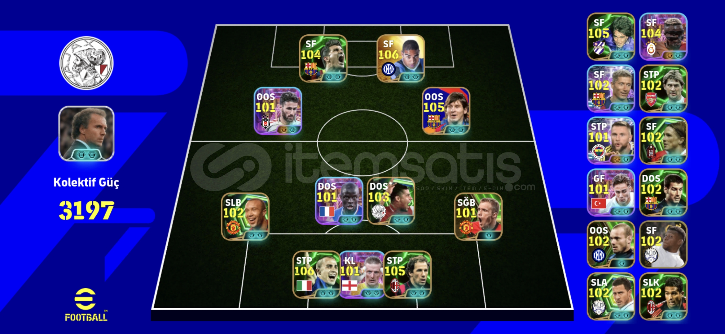 106 ADİRANO 106 CANNAVARO 105 BARESİ104 BOMBACI DAVİD VİLLA101 BOMBACI RAFA SİLVA 104 OSİMHEN105 MESSİ alıcısına hayırlı olsun