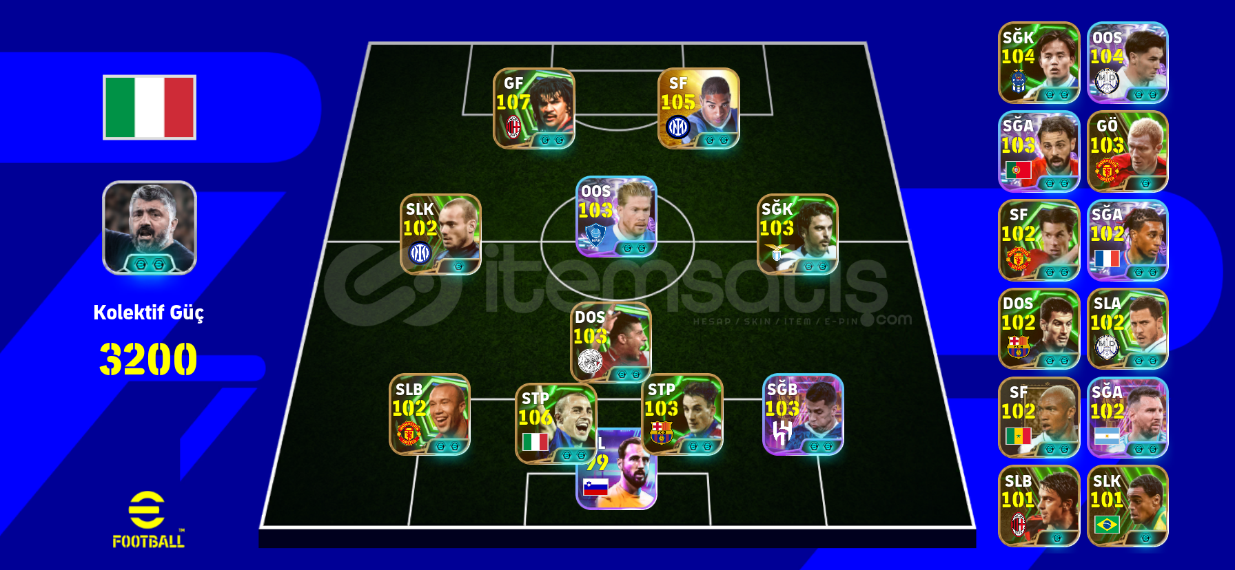 107 Ruud Gullit106 F. Cannavaro105 Adriano104 Brahim Díaz104 Takefusa Kubo103 P. Scholes103 Albert Ferrer103 S. Fiore103 J. Cancelo103 Bernardo Silva103 F. Rijkaard102 M. Silvestre102 M. Olise102 Pep Guardiola102 W. Sneijder102 E. Diouf102 R. van Nistelrooij101 CostacurtaMenajerler;Cesc FabregasGennaro GattusoRuben AmorimÇift Bağ Hesaptır.Diğer Bağ ölüdür.Değişim olmaz.ABARTI OLAMAYACAK ŞEKİLDE PAZARLIK YAPILIR.Sorun yaşar...