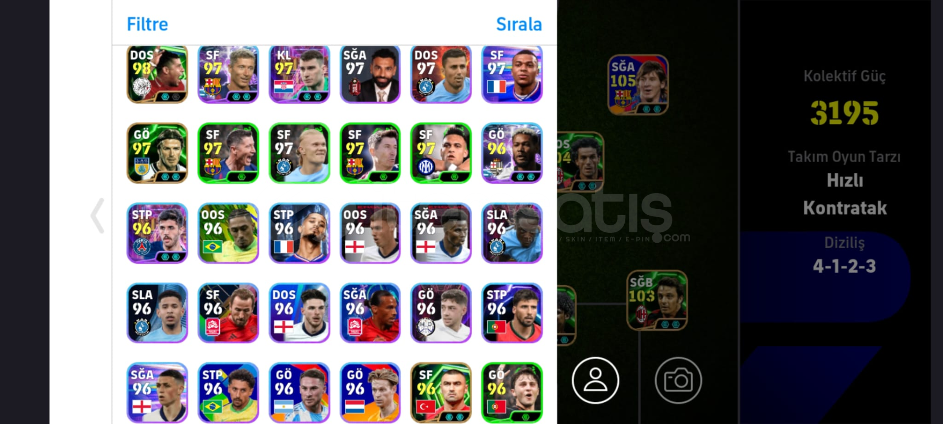Hesapda Messi ve neymar paketi alınmıştır 4. klasmandadır hesapta apple id ve google bulunmamaktadır tek bağdır