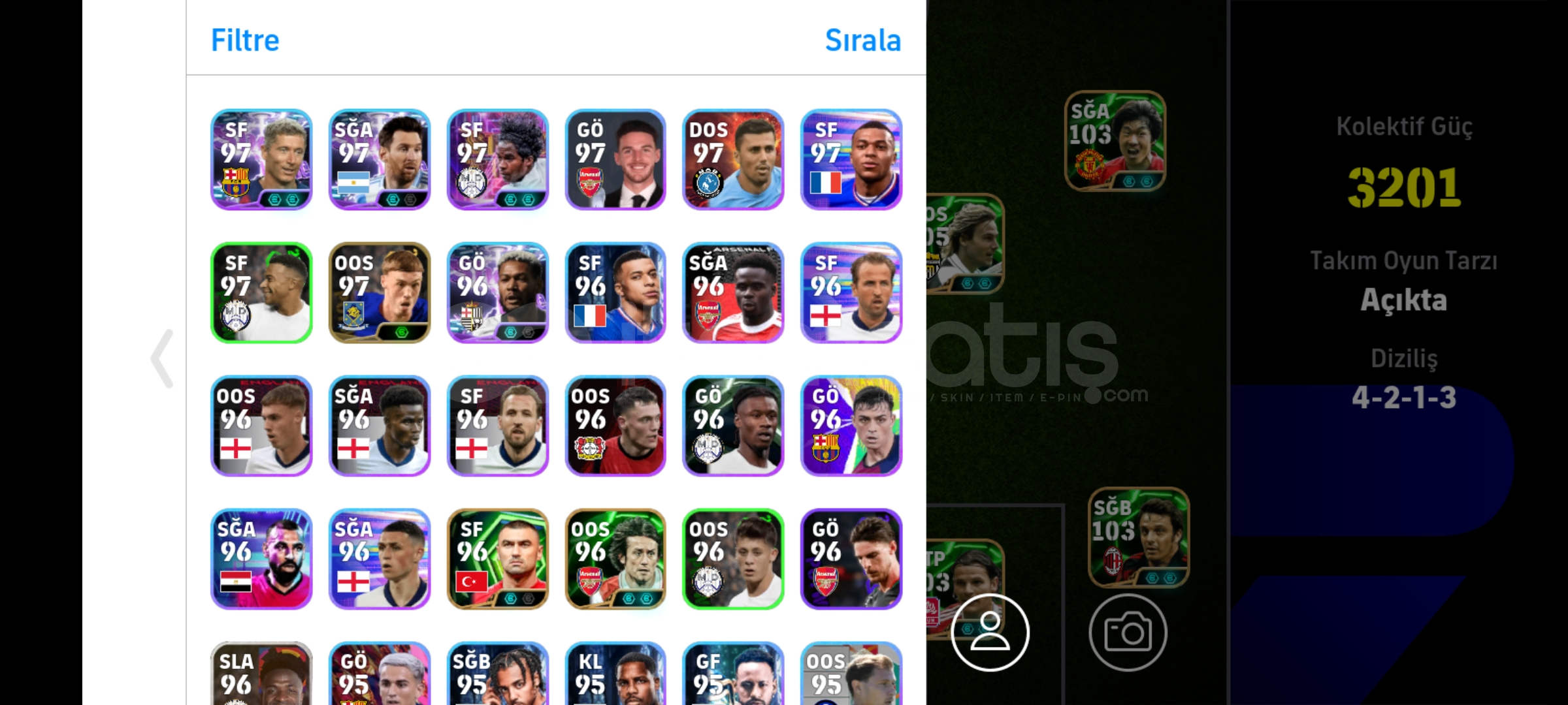 PAZARLIK YAPILIR!TR SERVER HESAP, YENİLMEZ KADRO!3200+ KG, 107 NEYMAR, 105 NEDVED, LİG TAKIMLARINDA 107 KAFACI OSİMHEN, 105 GATTUSO + P...