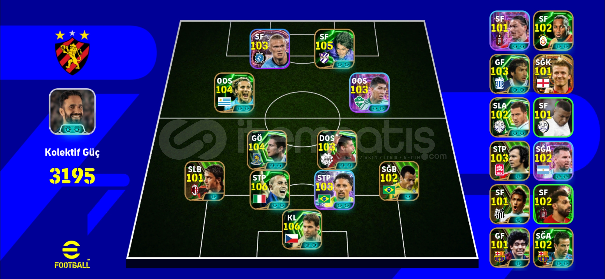 Hesapta 103 Haaland 105 batistuta gibi müthiş kartlar vardır.