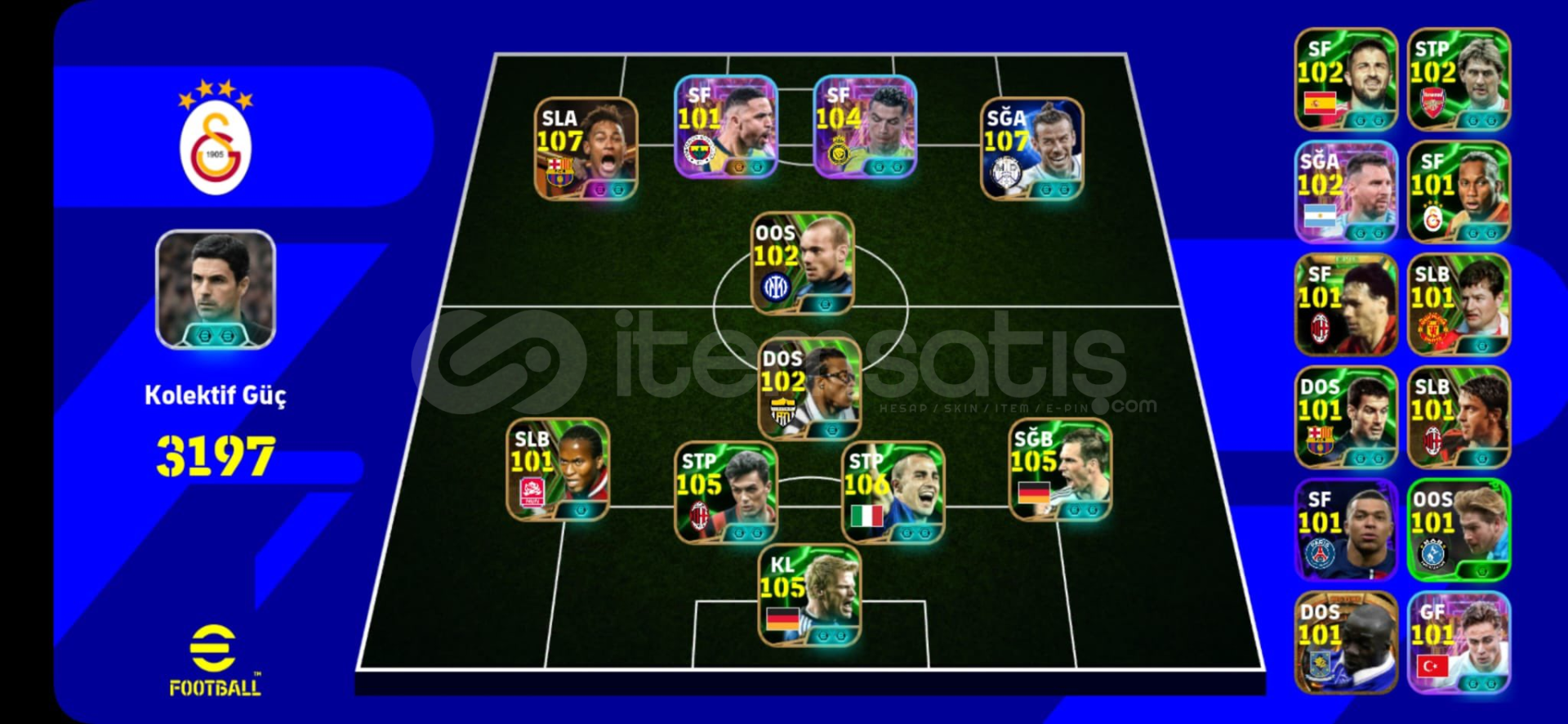 Hesap Tek bağdır.Hesapta 107 Neymar ve 107 Bale bulunmakta. 3200 Kg. Hesapta 105 Maldini ve 106 Cannavaro bulunmakta. Bek olarak Lahm, Costacurta, İrwin var. Hesapta teknik direktör olarak Arteta Amorim ve Steven Gerrard vardır. Arsenal paketi alınmıştır. Kalede Oliver Kahn bulunmaktadır.Santrafor Cristiano Ronaldo Ve En nesyridir. Detaylı bilgi için dm yazın. Ciddi alıcıysanız yazın.