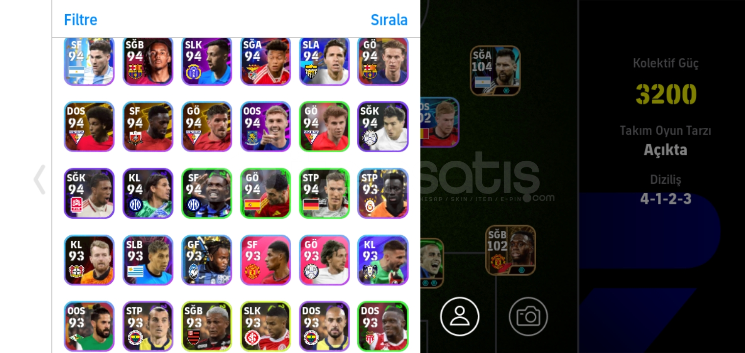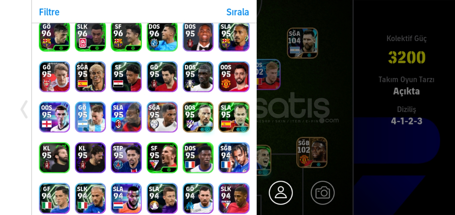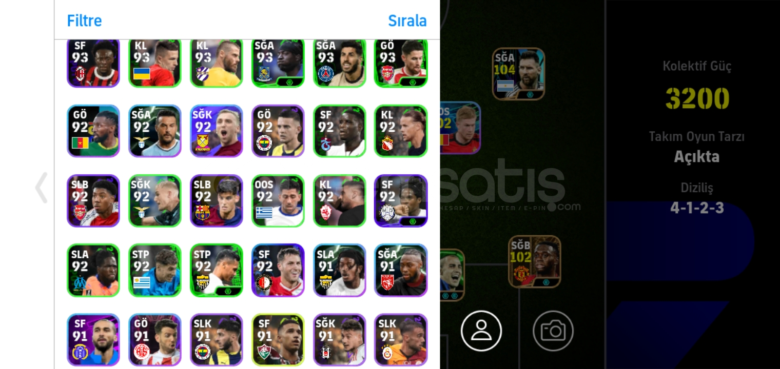 Hesapta 104 messi paketi xabi ve baya epik bulunuyor rezervi bile doludur hesabin
