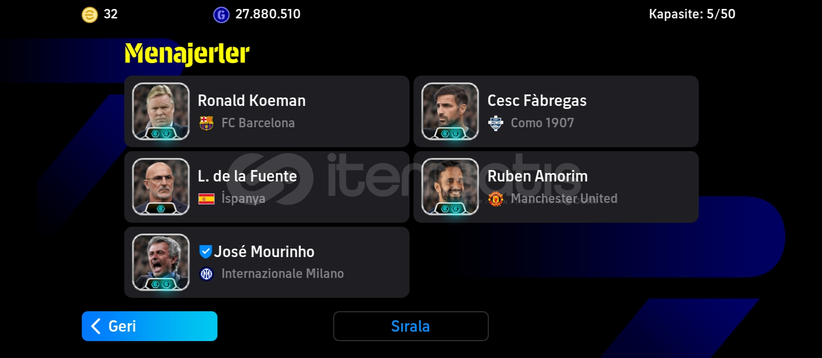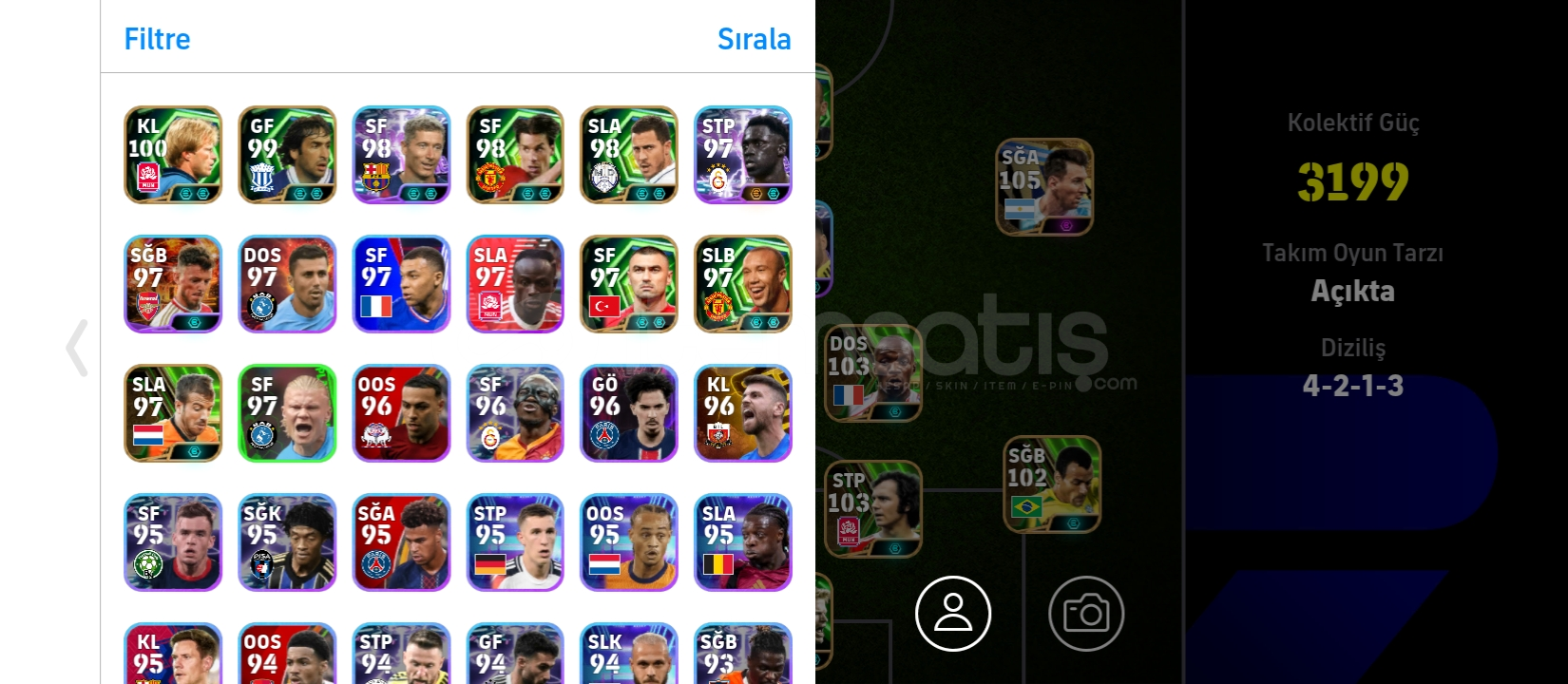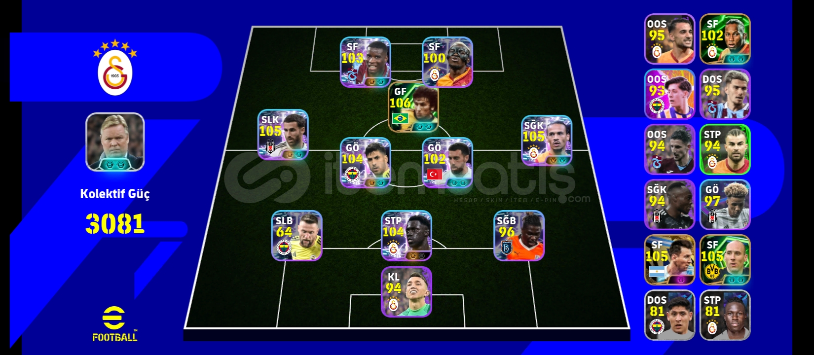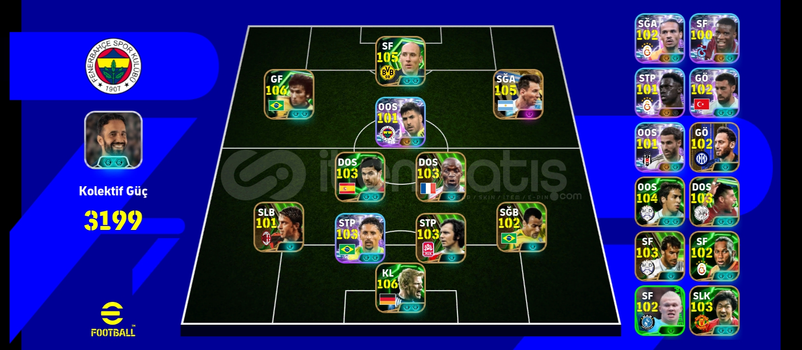 3200 kolektifi Çift bombacili 106 zico 105 koller 103 onancu 105 sane 105 rafa Silva 105 asensio 105 Messi 106 kahn efsane oyuncular