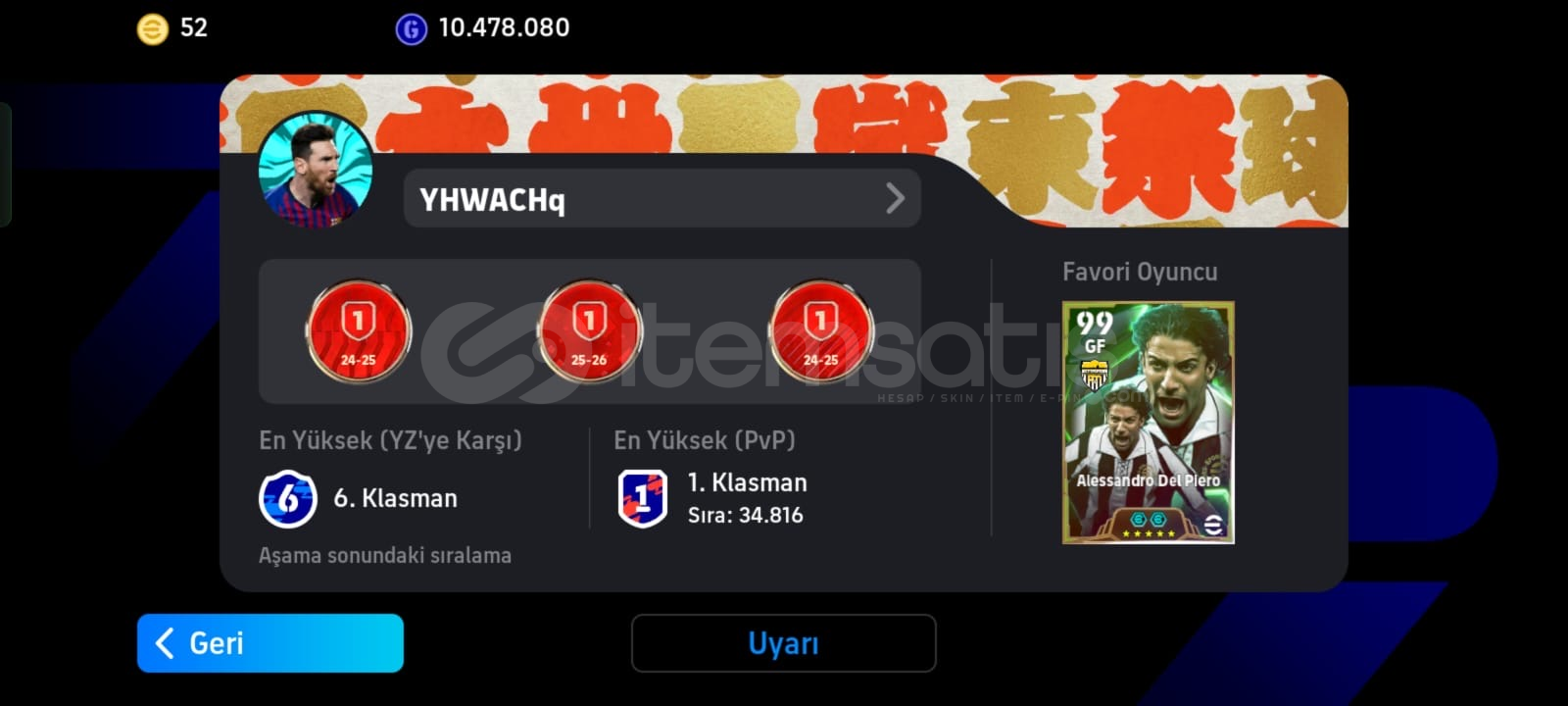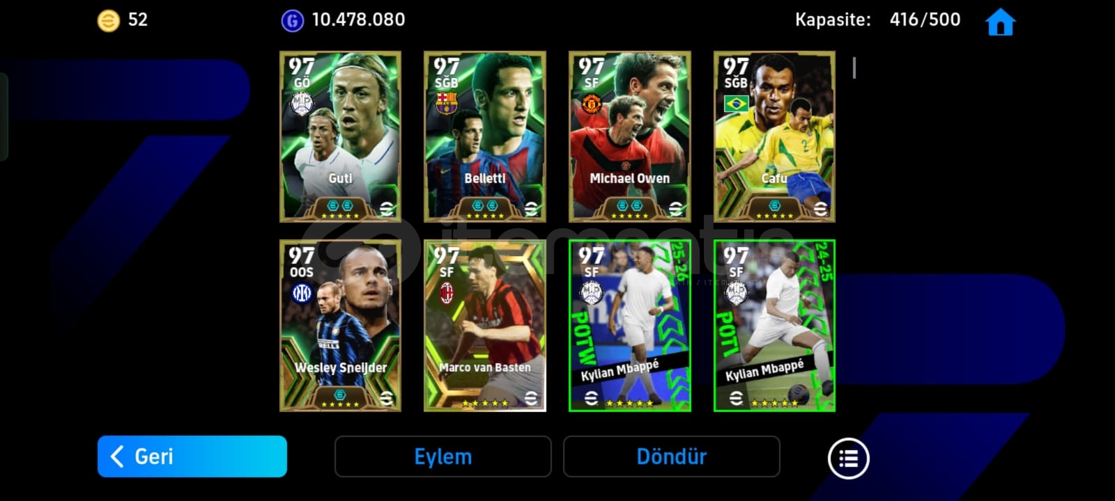 -105 Nedved-BOMBACI 105 Del Piero-105 Steven Gerrard -105 Kaka-105 Johan Cruyff-105 Virgil Van Dijk-105 Michael Owen-105 Fabio Cannavaro-Çok Şanslı Hesap-Hesap Tek Bağ Fakat Bir Ölü Bağ Var Eski Cihazımdan Kalma Ona Hiçbir Şekilde Erişimim Yok Giriş Yapamıyorum Hesabın Garantisini Verebilirim Hiçbir Şekilde Sorun Çıkmaz Öncedende Bir Çok Kez eFootball Hesabı Sattım Sonuna ...