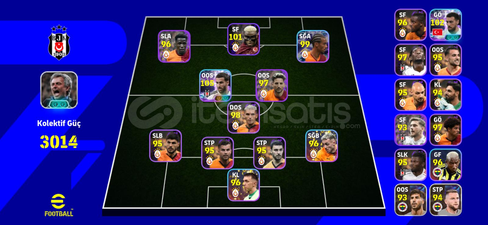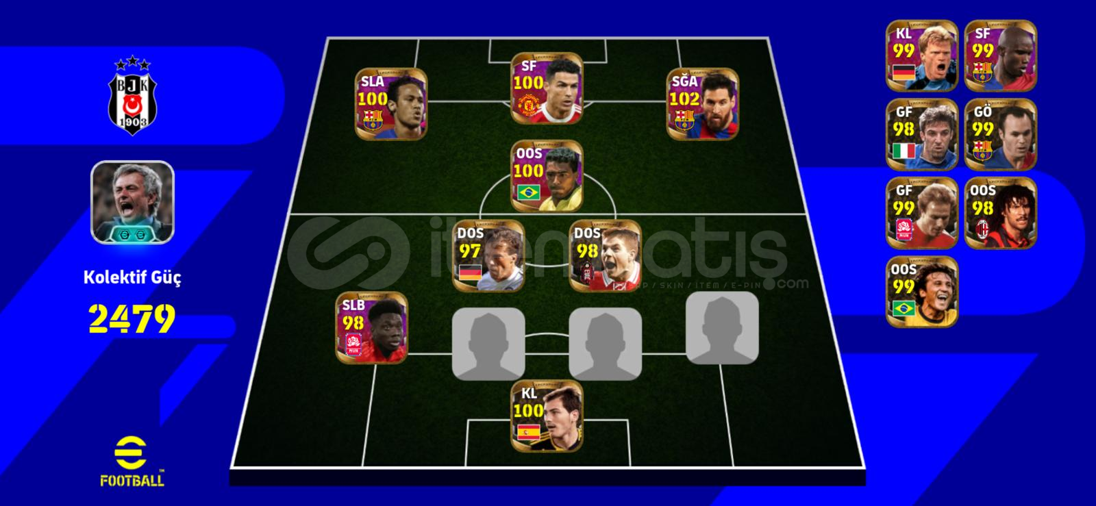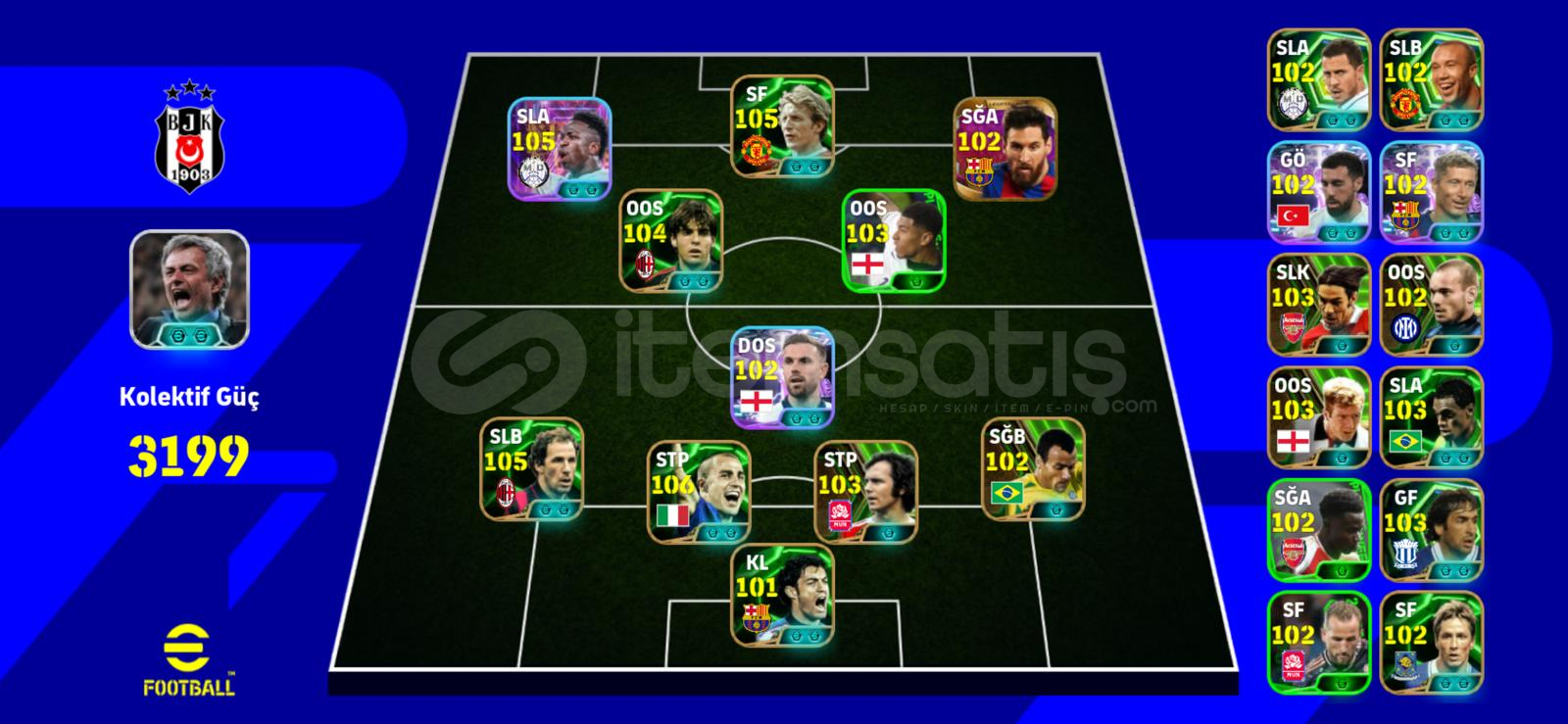 3200kg 200+ Oyuncu2021 Legend Oyuncular106 Cannavaro105 Baresi105 Law105 Vini105 Rafa Silva 104 Kaka103 Bellingham (104)103 Scholes102 Messi (Eski Legend)G.s. ağırlıklı Süperlig KadroKoleksiyonluk tek bağ -mc olmayan nadir hesaptır.15 adet eski legend bulunmaktadır.Şimdiden alıcısına hayırlı olsun...