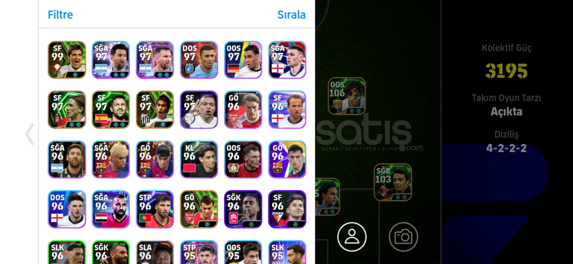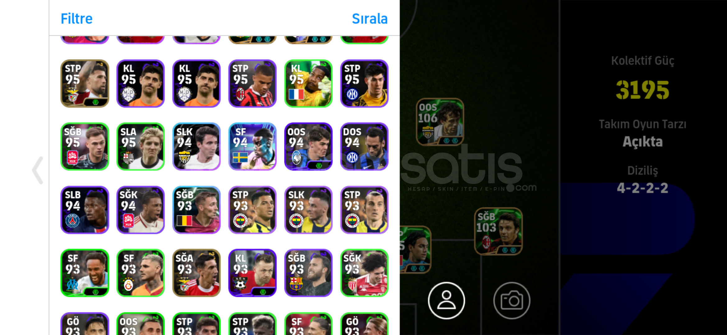 Hesapta bombacı david villa mevcuttur.Full süperlig kadrosu kurulabiliyor hesap tamamen bana aittir tek bağ olup hiçbir sık...