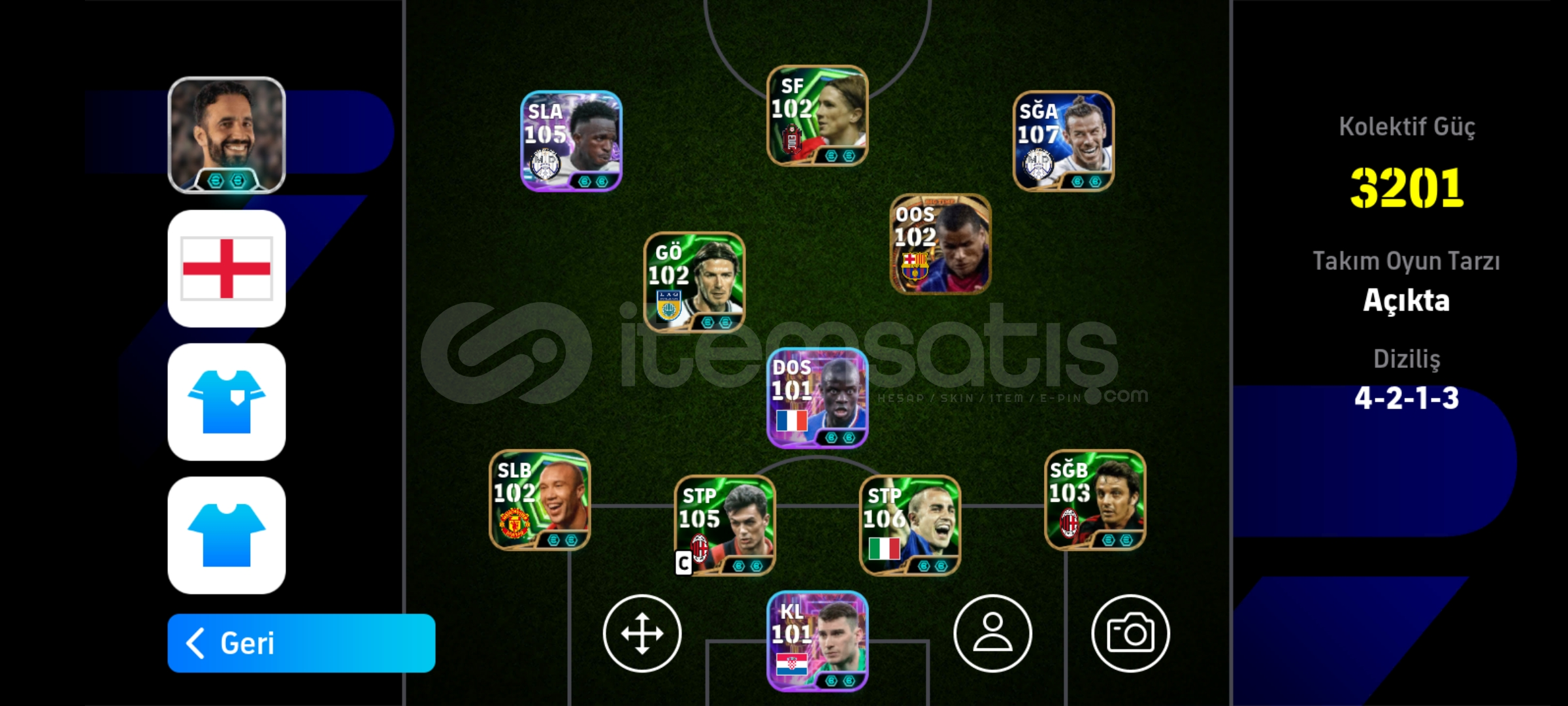 107 Bale 106 cannavaro 105 maldini(yıkılmaz kale)105 van basten 105 vini (dinamik depar)2 güçlendiricili menajer Sorusu olan dm ...