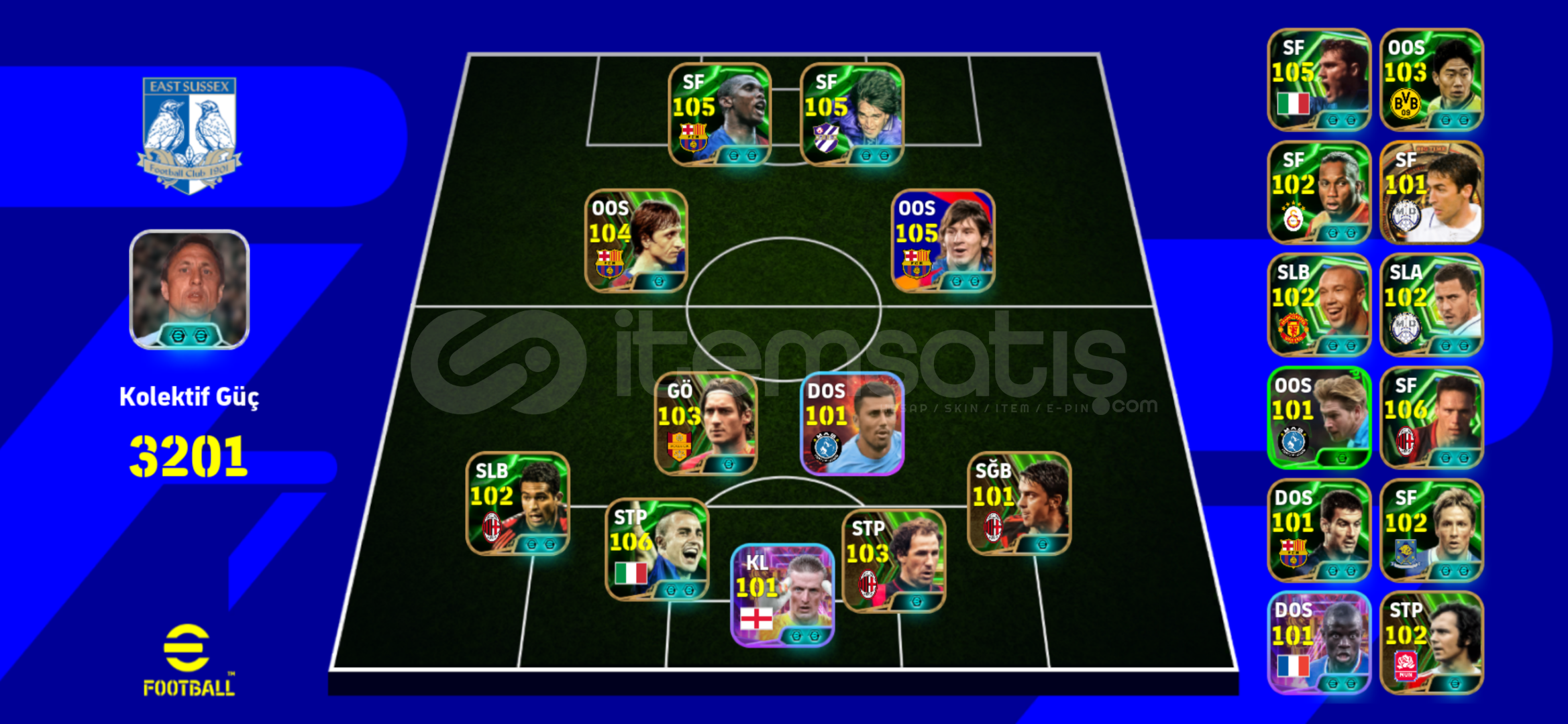 Hesapda görüldüğü üzere 105-106 BARÇA Eto bulunmaktadır. 106-107 van basten vardır. Bombacı Christ Vieri bulunmaktadır. Hesap çift bağdır. Game center bağı öldürülür. Konami id devirliktir. Pazarlık yapılır.