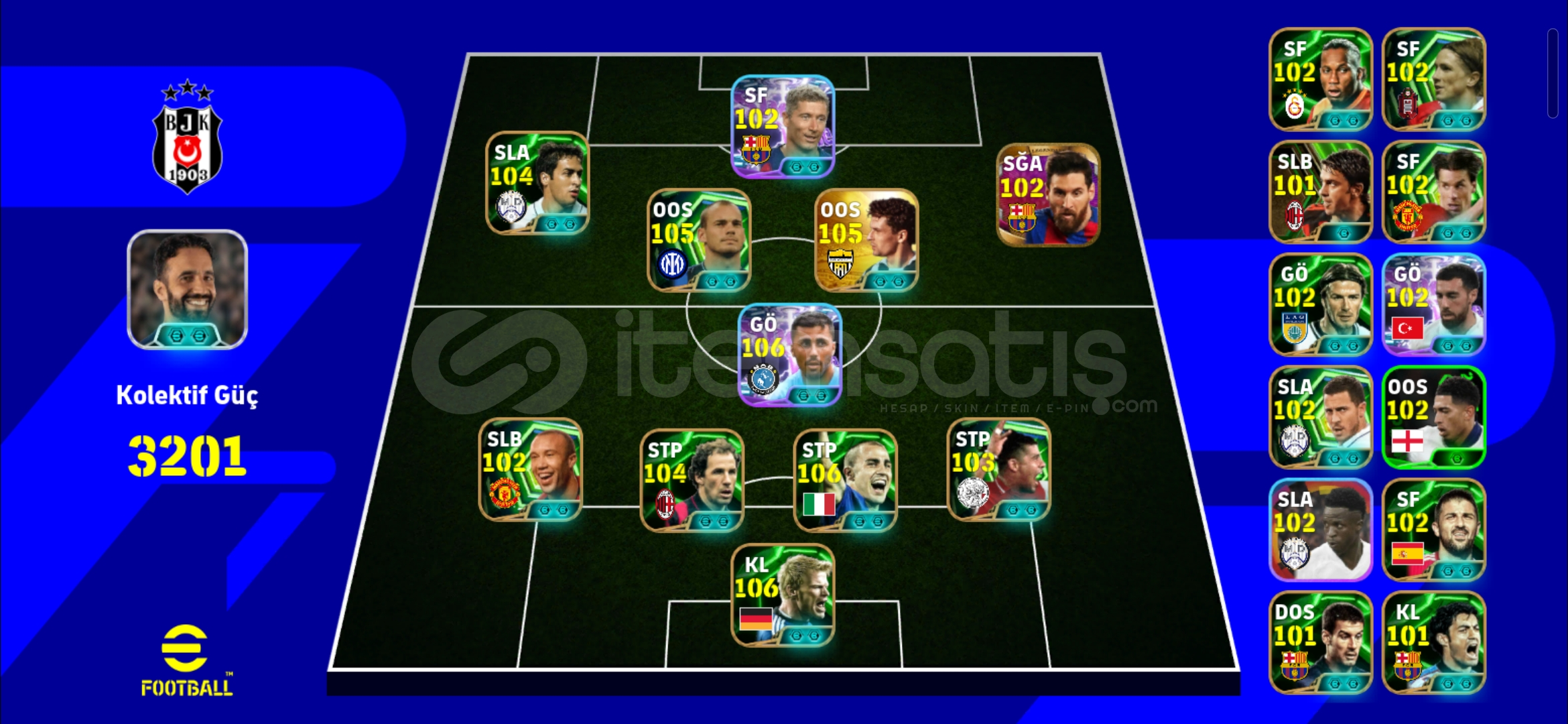 105 baggio 105 sneijder 104 raul icon messi 106 rodri 104 baressi 106 cannavaro 106 kahn
