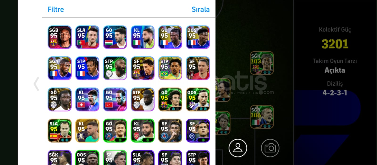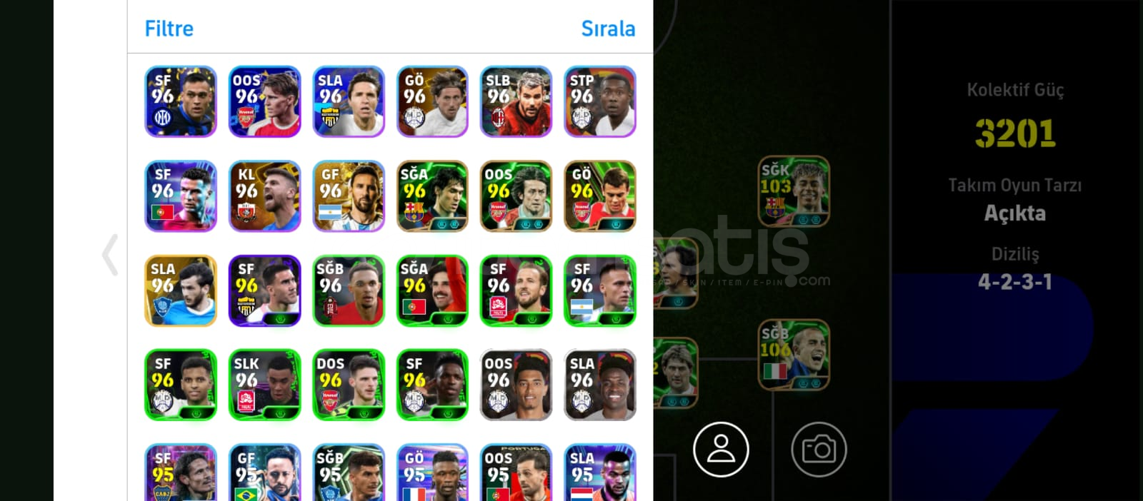 pes hesabı 3201 kg 105 grizeman 106 oliver kahn 106 canavaro dop dolu ilk gelen kapar hesabı
