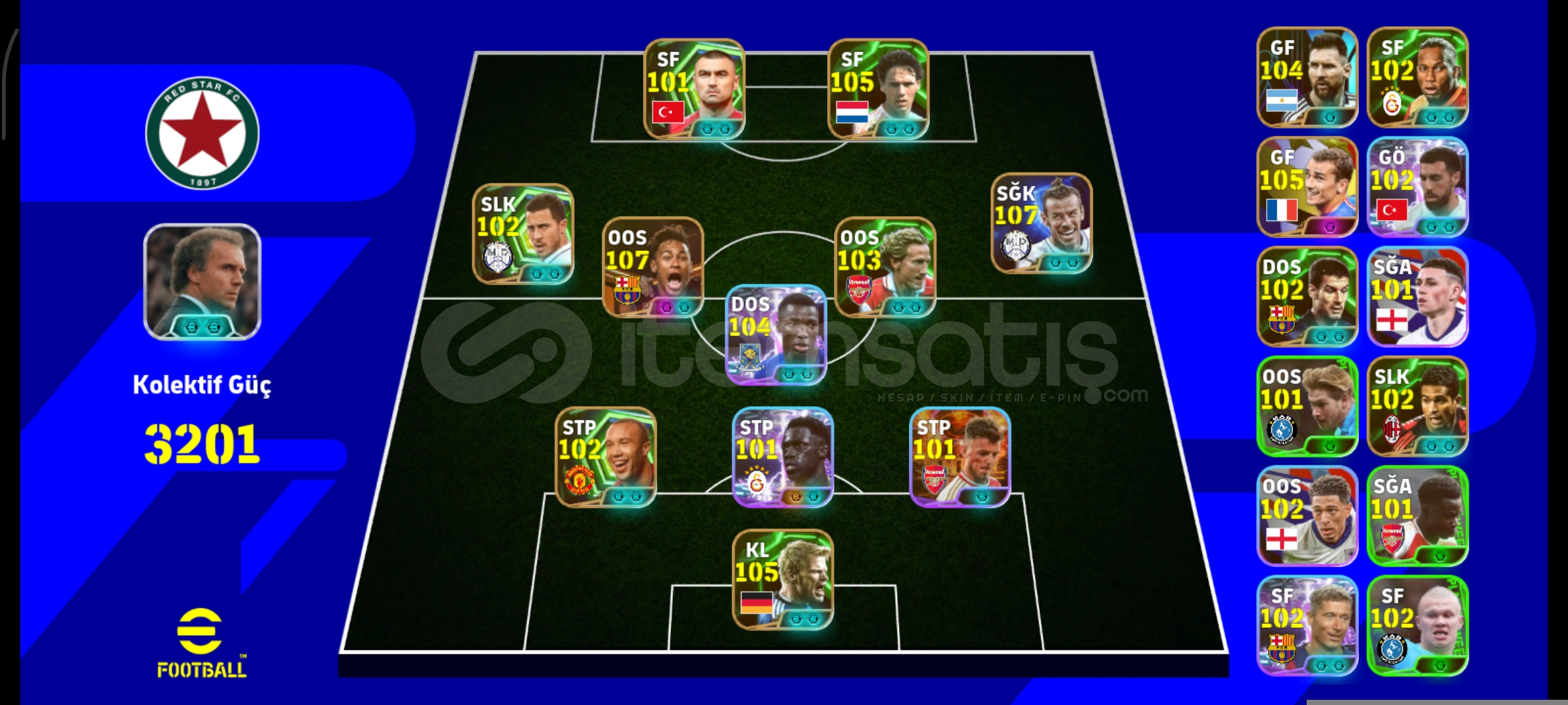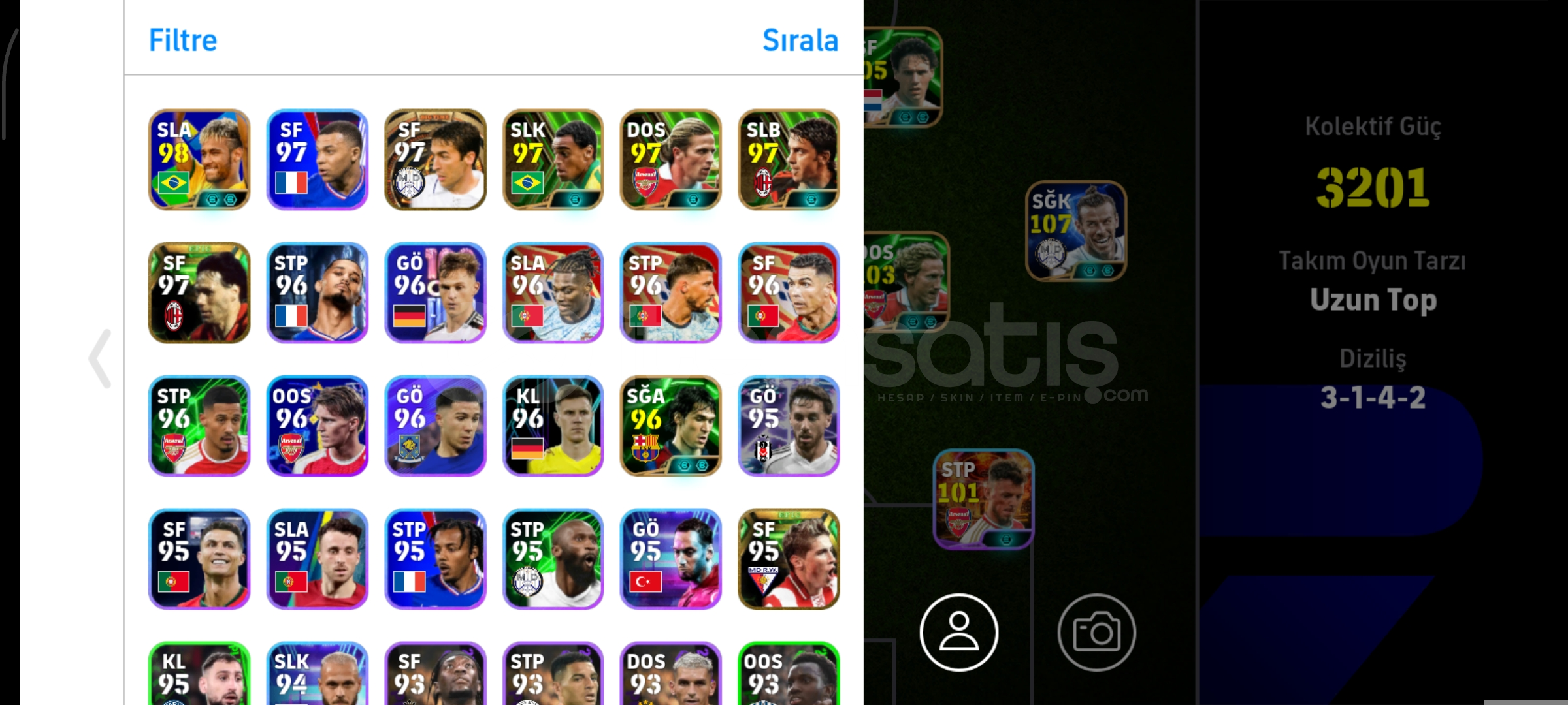 Hesap 3201 kolektif tek bağ konami bombacılı eksi mc yok Neymar paketi 107 Neymar 107 bale 105 kahn 105 vanbasten 105 griezman gibi güzel kartlar mevcut alana hayirli olsun
