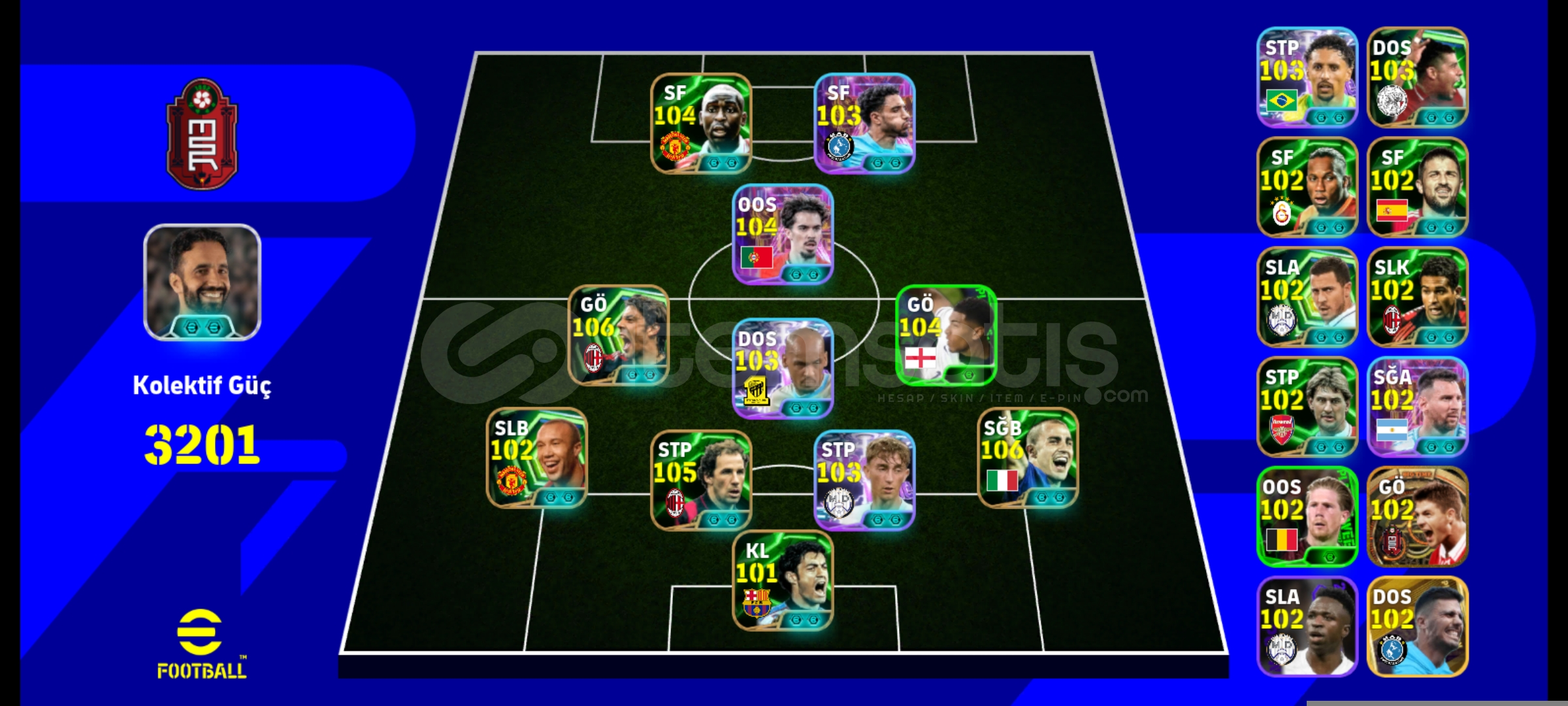 3201KG HESABIMIZ BOMBACILI 106LAR 104LER DOLU REZERVİ HARİKADIR. 106RUİ COSTA 106CANNAVARO 105BARESİ 104VİTİNHA 104BELLİNGHAM 104YORKEÇİFT GÜÇLENDİRİCİ AMORİM GATTU FABRETEK BAĞDIR EPOSTANIZA DEVREDİLİRALICISINA HAYIRLI OLSUNPAZARLİK OLUR PAZARLİK SÜNNETTİR