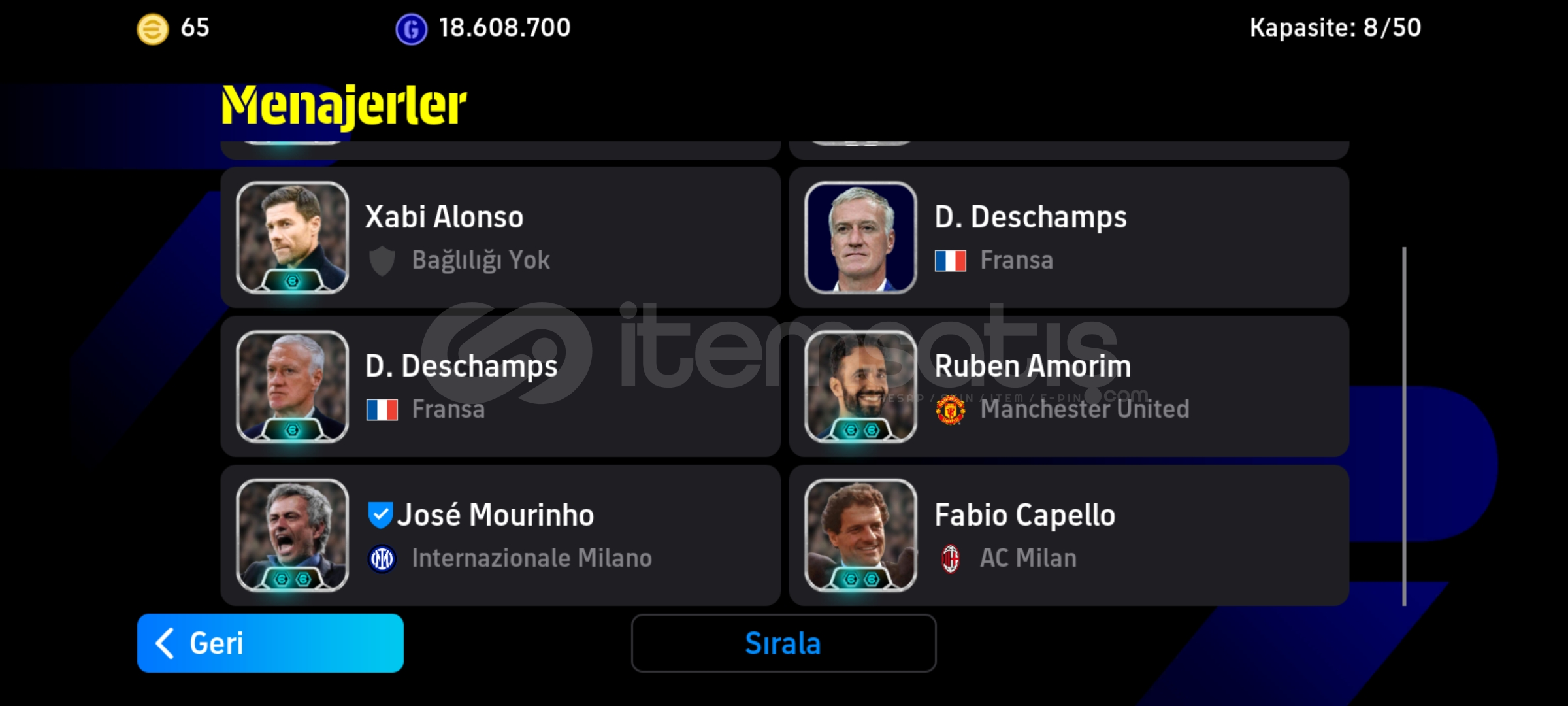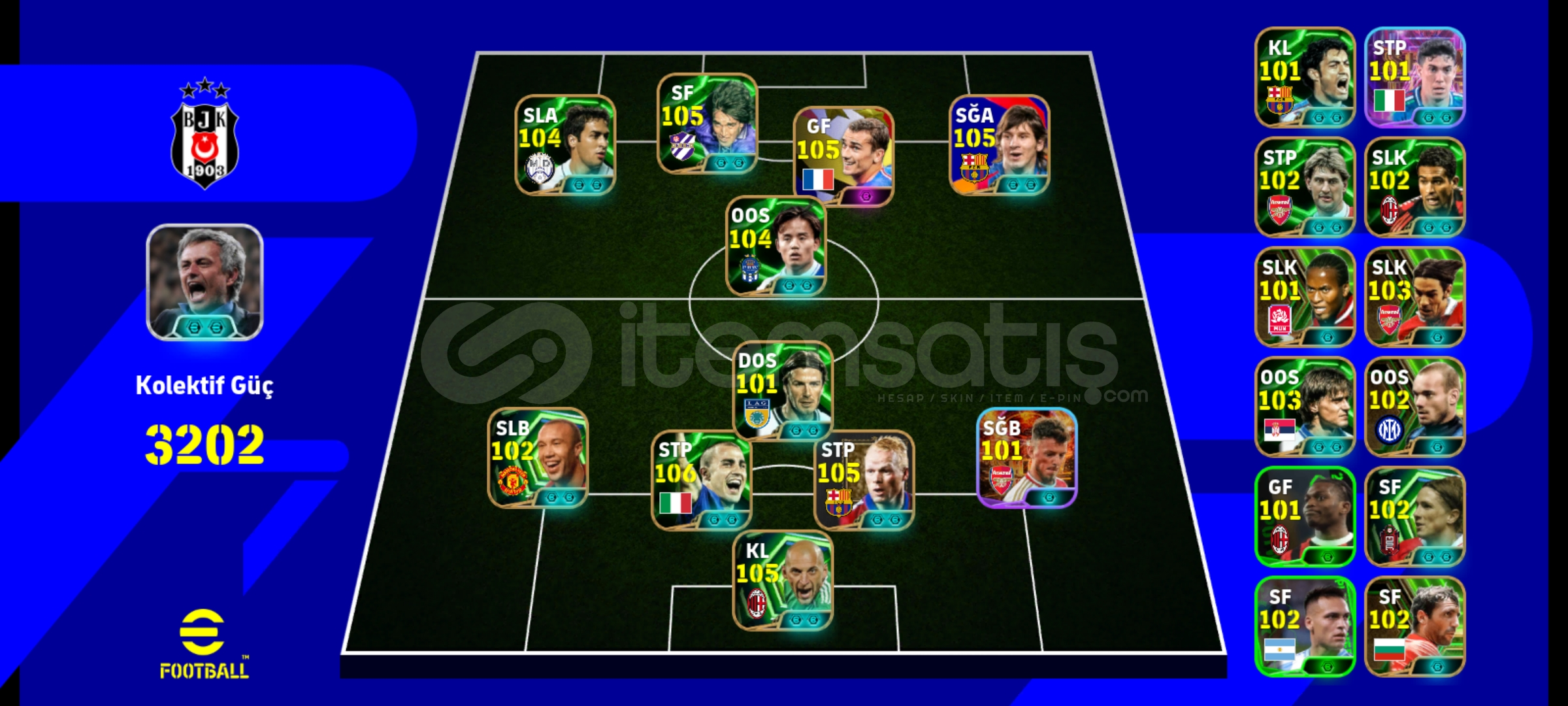 3202 KG 36 EPIC 1 EFSANEVI OYUNCU VARDIR VE 8 MENAJERYazmadan almayiniz!OYUNCULAR:105 KOEMAN 105 ABBIATI 105 BATISTUTA105 GRIEZMANN105 MESSI104 KUBO104 RAUL106 CANNAVAROVE EFSANEVI OYUNCU OLARAK ALBERT FERRER