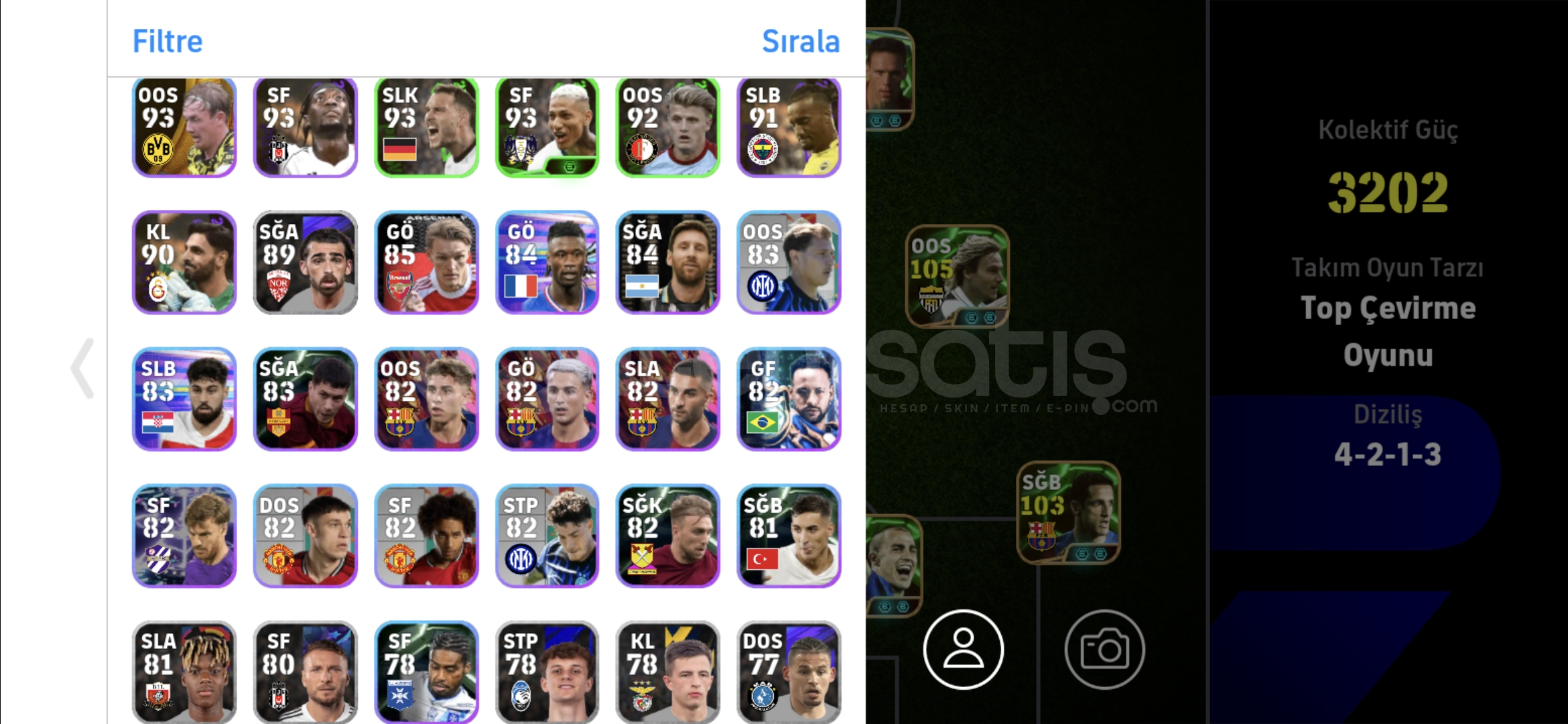 3202 KG, TEK BAĞ✅️, ORTA REZERV106 VAN BASTEN106 CANNAVARO106 RODRI105 NEDVED104 FORLAN104 GYOKORES104 LAMPARD ve daha nicesi dopdolu hesap, rezervi orta, -mc falan hiçbirşey yok, ios da da android de de tek bağ alana hayırlı olsun, ÜZMEZ✅️