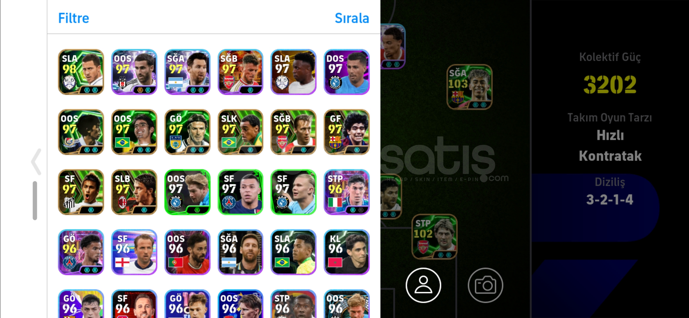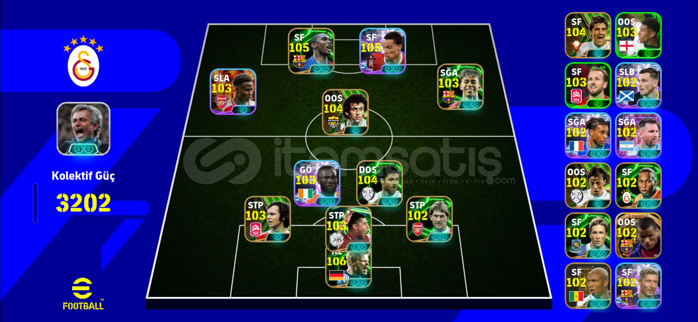 Tek bağ hesap 2021 den kalma hesap 2 bombacı nakamura olise samuel eto 105 ekitike 105 3202 kg +300 yedek rezerv oyuncu