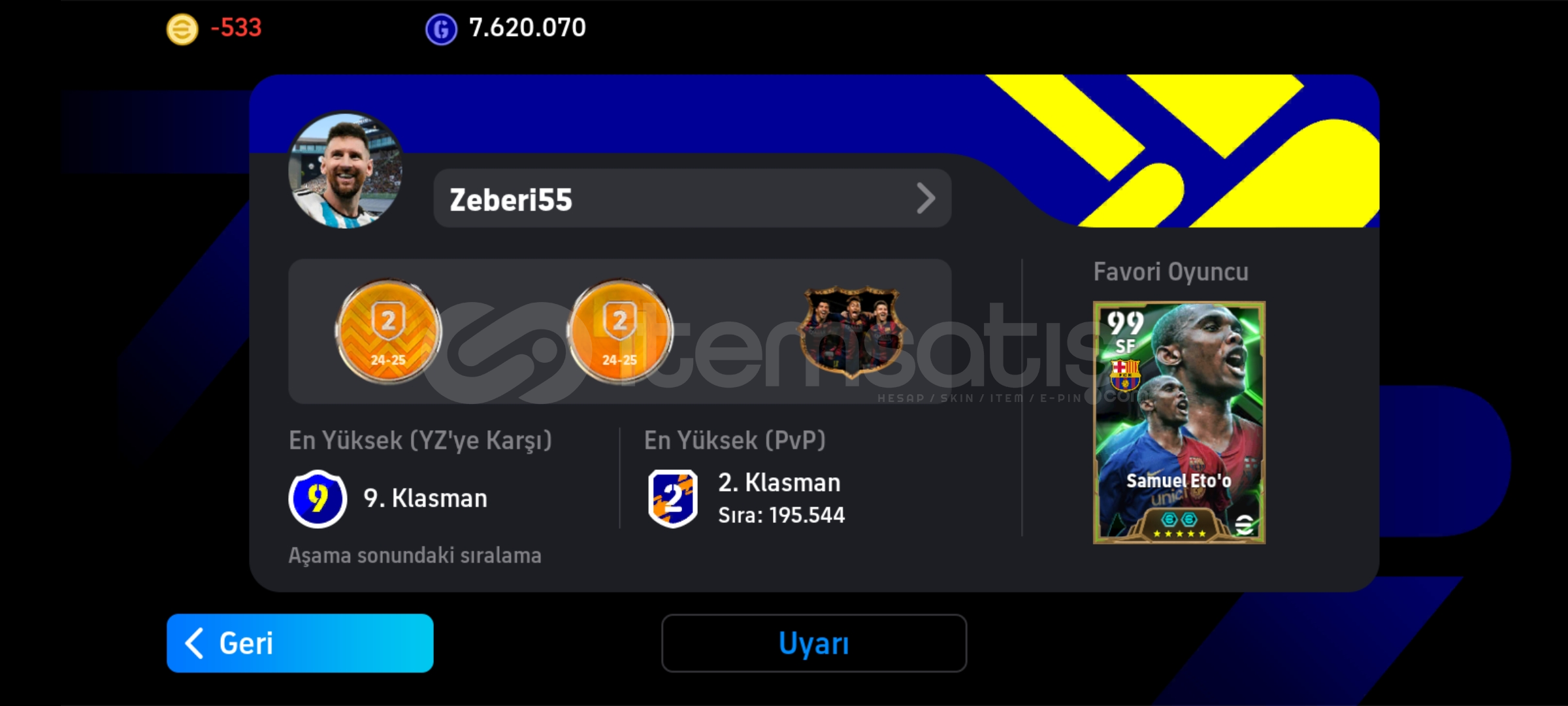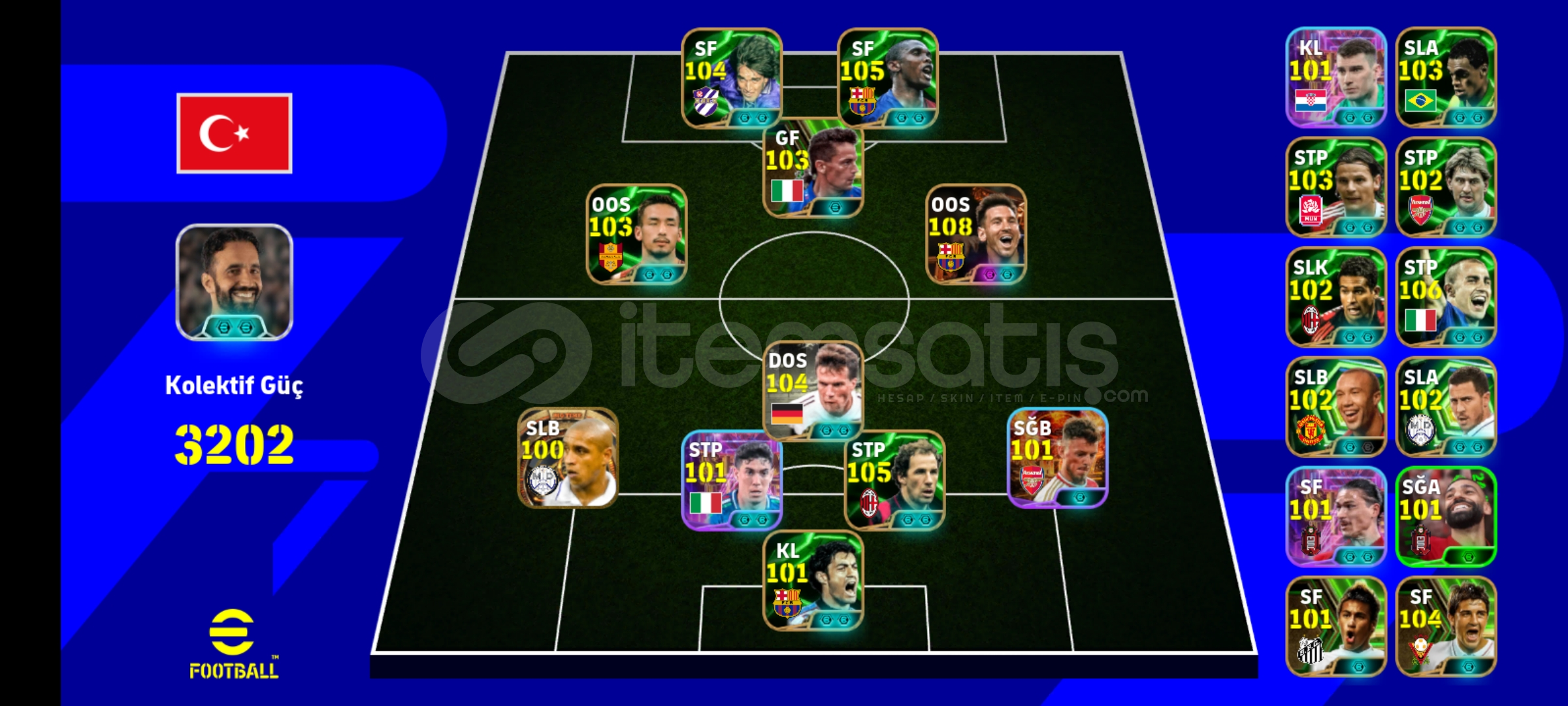 Değerli oyuncula108 Messi105 eto103 denilson105 batistuta106 canavaro103 Baggio103 nakata104 matthaus103 van buyten105 baresi67 my club vardır PAZARLİK YOKTUR BU FİYATA BÖYLE HESAP BULMANIZ ÇOK ZOR