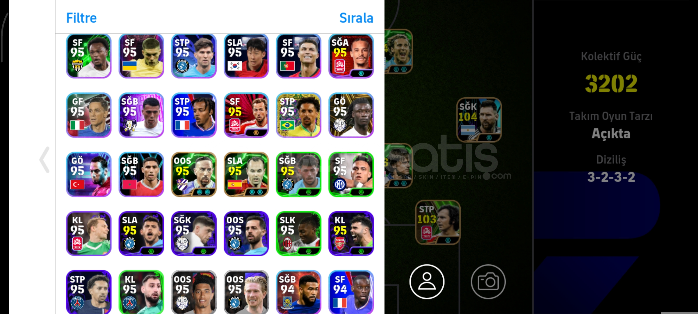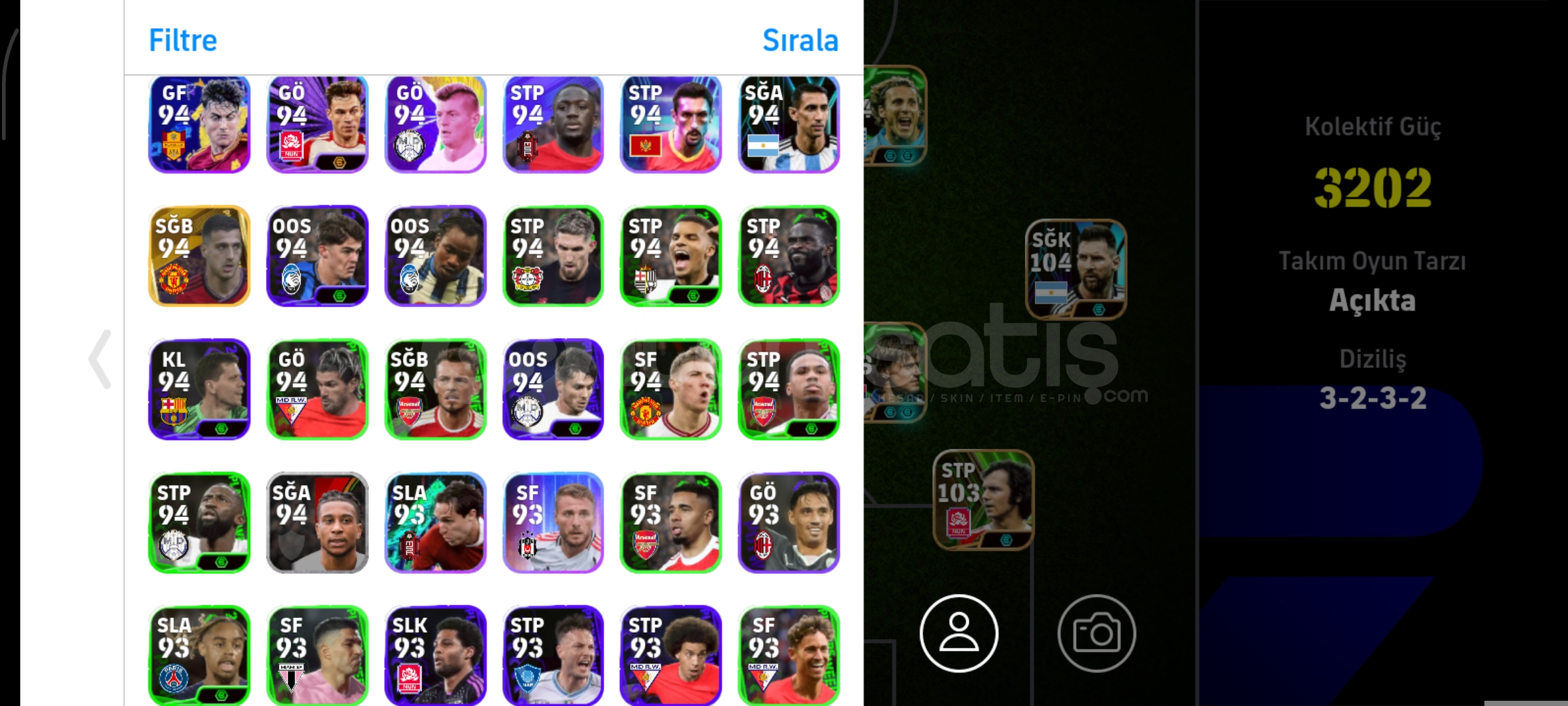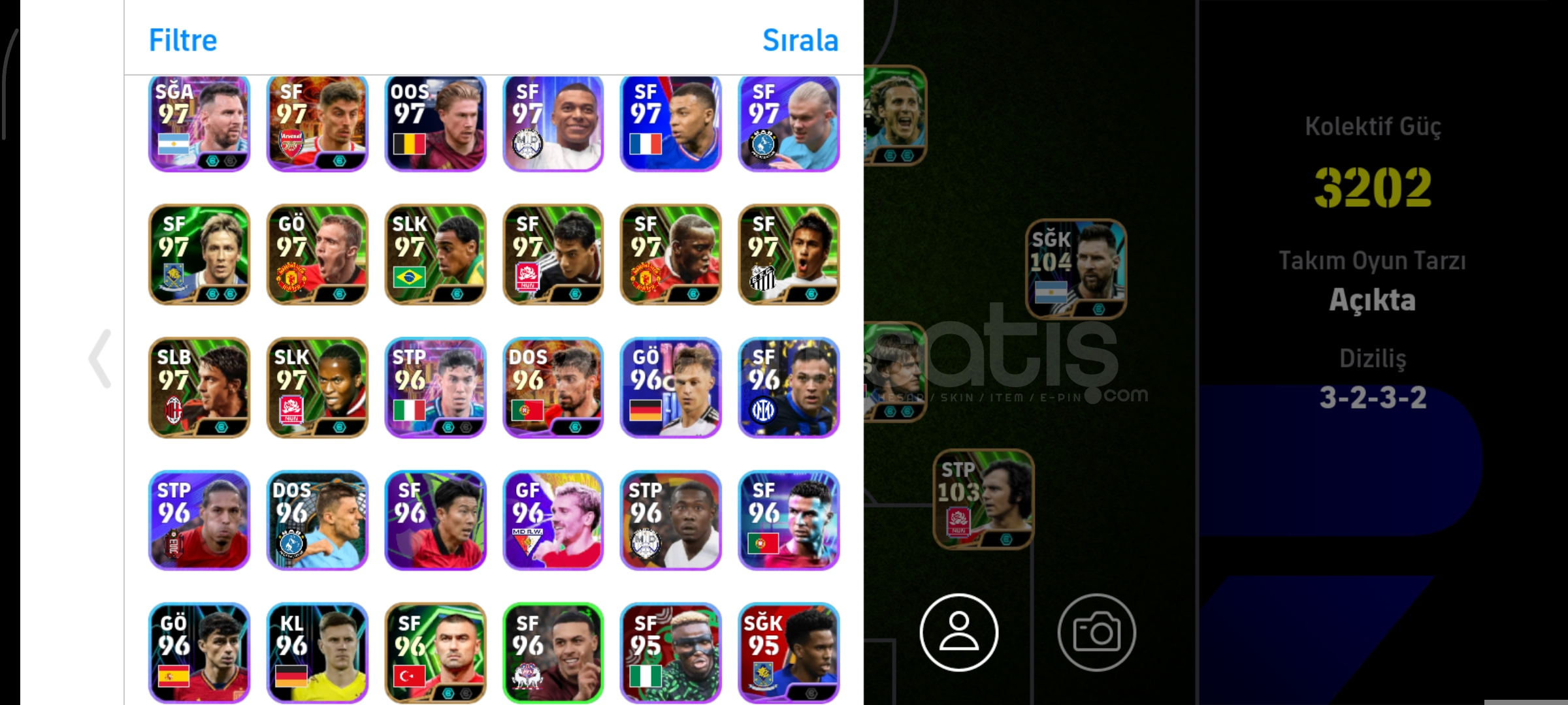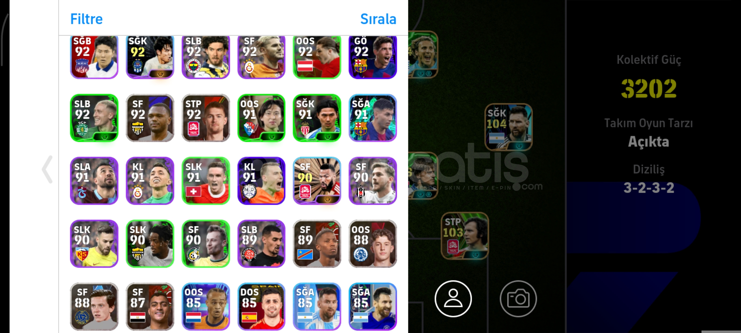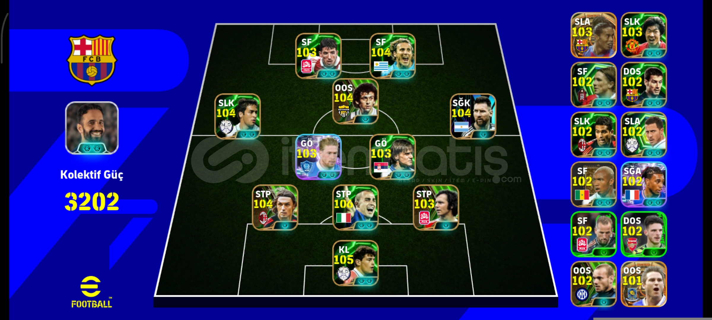 • 3202KG HESABİMİZ 2BOMBACILI 105 104 BİRÇOK OYUNCU İÇERMEKTE VE REZERVİ DOPDOLUDUR. MESSİ PAKETİ