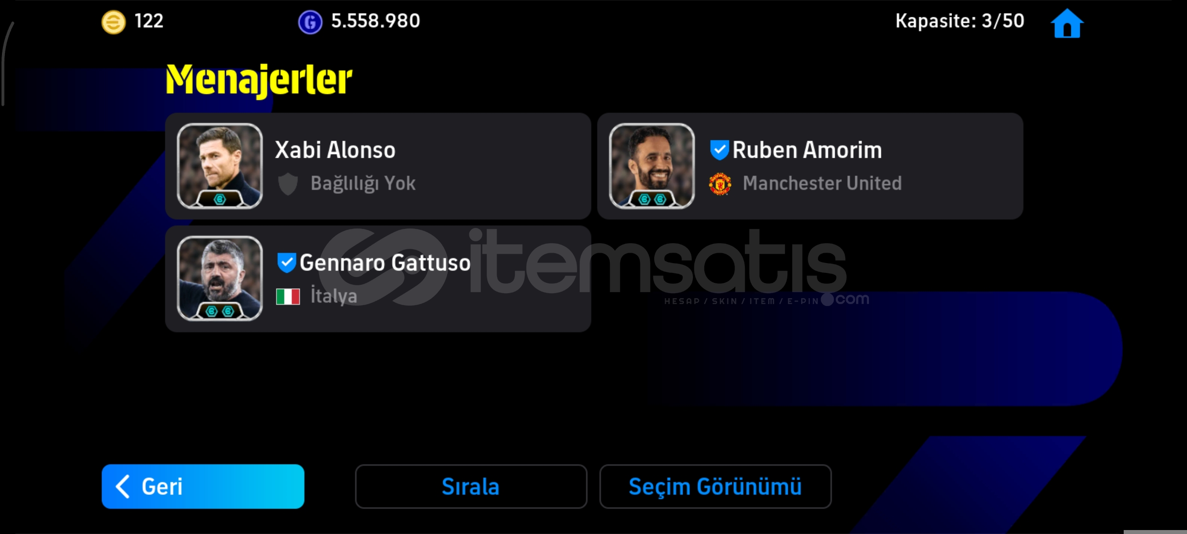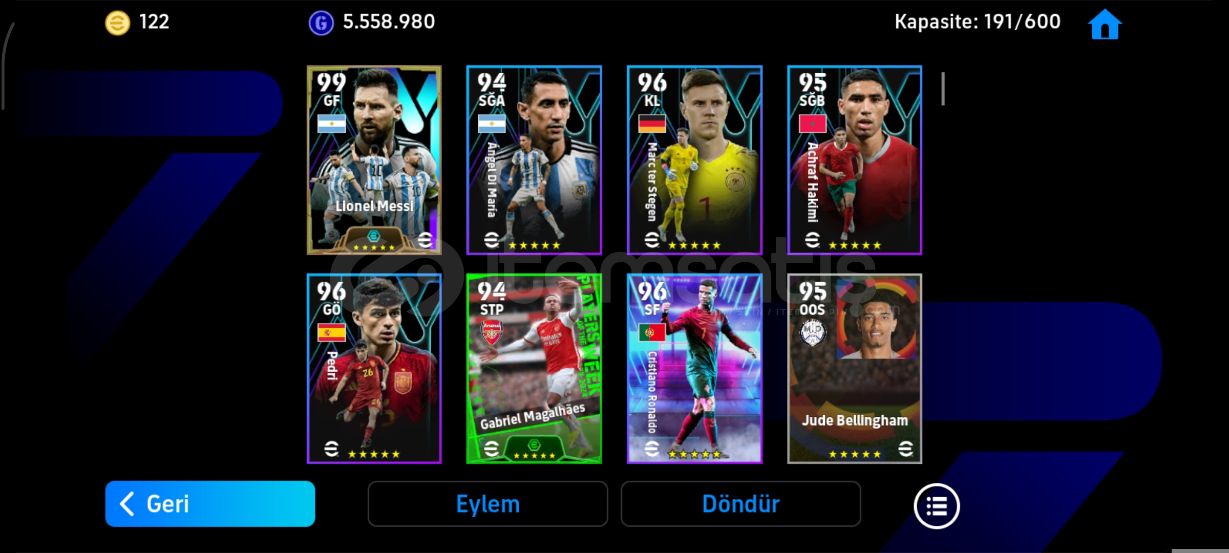 3202KG HESABİMİZ 2BOMBACILI 105 104 BİRÇOK OYUNCU İÇERMEKTE VE REZERVİ DOPDOLUDUR. MESSİ PAKETİ106CANNAVARO 105CASİLLAS 104FORLAN 104RAUL 104MESSİ 104MALDİNİ 104PLATİNİÇİFT GÜÇLENDİRİCİ AMORİM GATTUSOTEK BAĞDIR EPOSTANIZA DEVREDİLİRALICISINA HAYIRLI OLSUNPAZARLİK OLUR PAZARLİK SÜNNETTİR