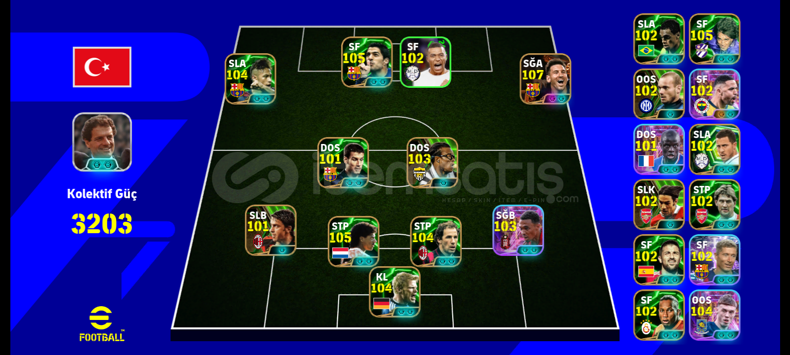Hesap ölü bağdır Resimlerde gorulduğu gibi bir hesapdır içinde 108 messi 104 neymar 105 suarez gibi oyuncular bulunur