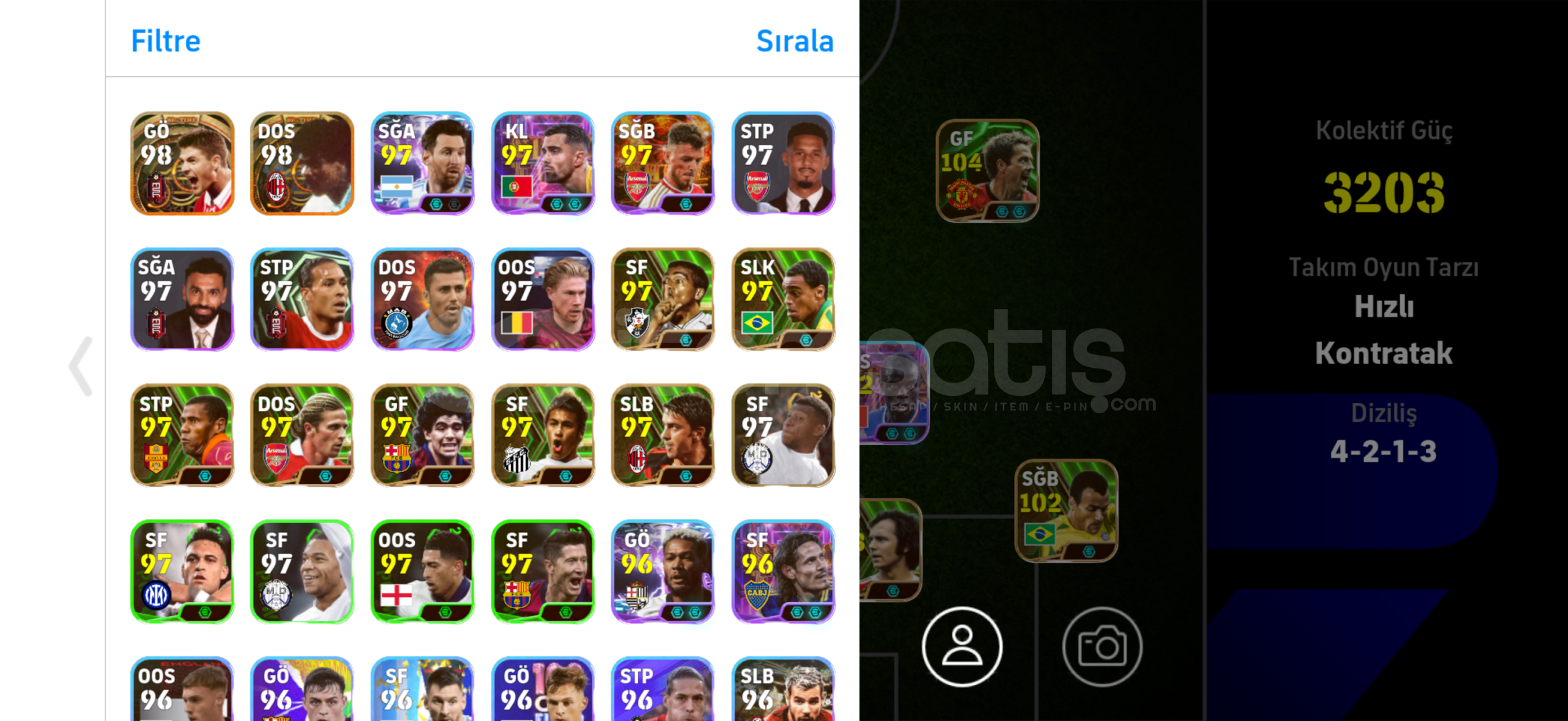 106 cruyff 105 bebeto 105 batistuta 106 oliver kahn 104 owen 104 David villa ve dahası süper hesap kaçırma