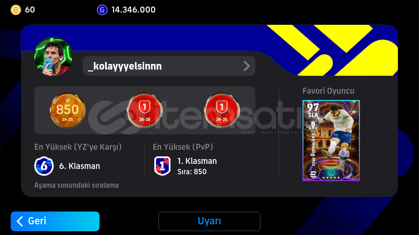 HESAPTA ESKİ BİRÇOK OYUNCU VARDIR REZERV DOPDOLUDUR OYUNUN EN İYİ BOMBACISI SON VAR 2022 2023 DOLU EPİCLER GEÇEN SENE HESAP KLASMAN 1 DE 850 SIRAYA GELMİŞTİR OYUNUN ÇOK ÖZEL ROZETLERİNDEN BİRİ MEVCUTTUR KAÇIRMAYINTEK BAĞ EKSİ MC YOKHESAPRA İMZALI HAVERTZ MEVCUTTUR.